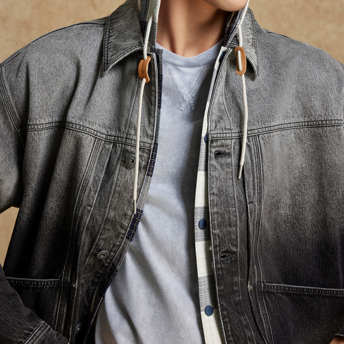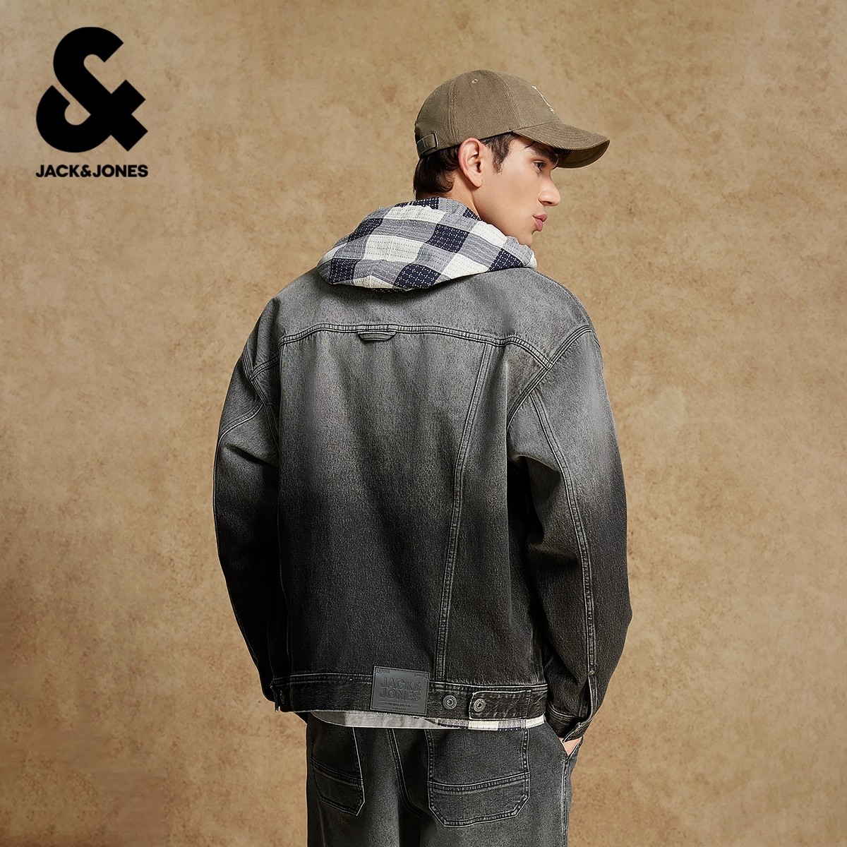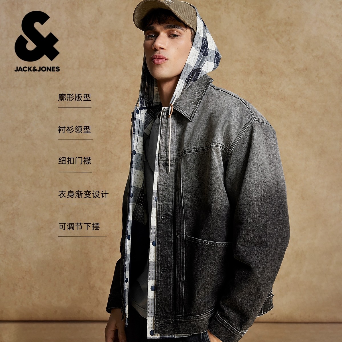 杰克琼斯春季牛仔上衣外套夹克男装廓形衬衫领型渐变图案潮流休闲