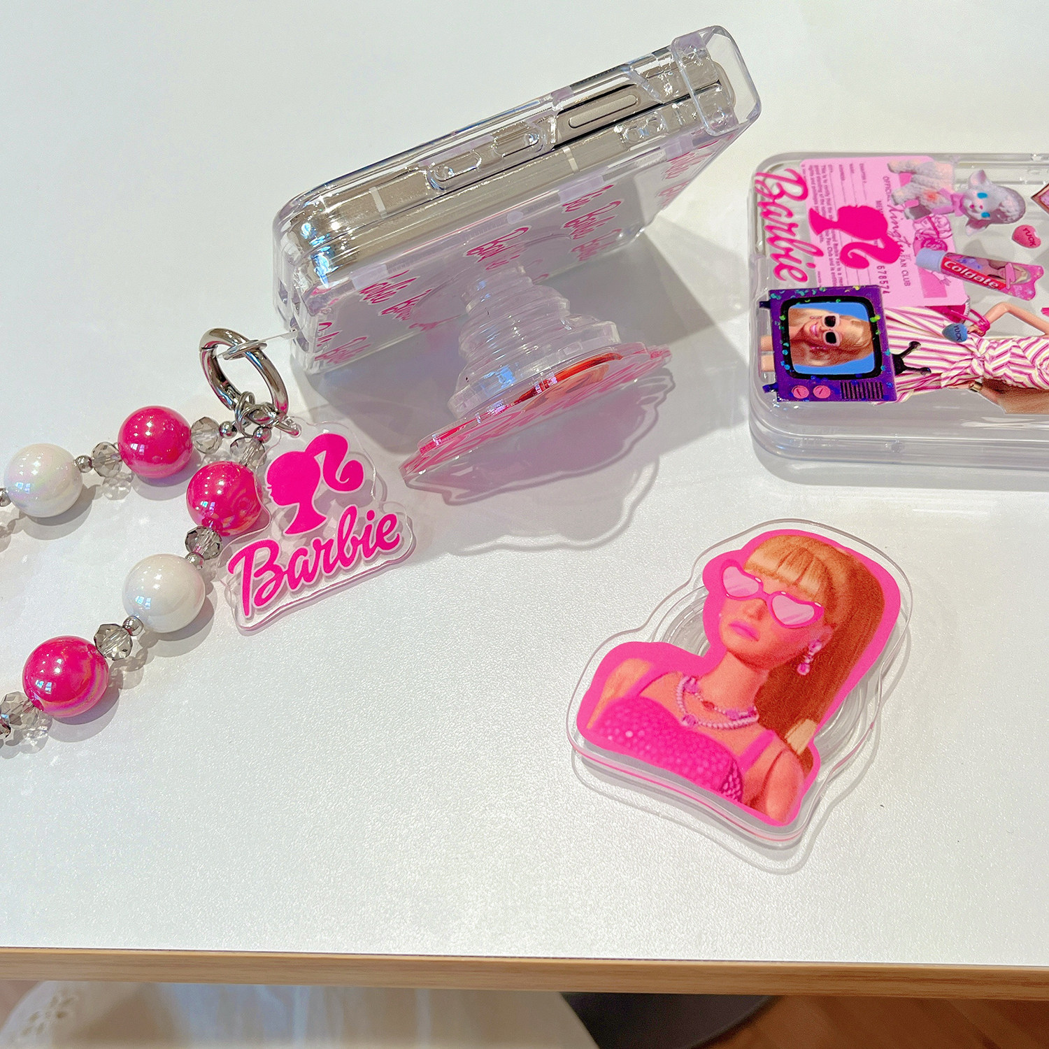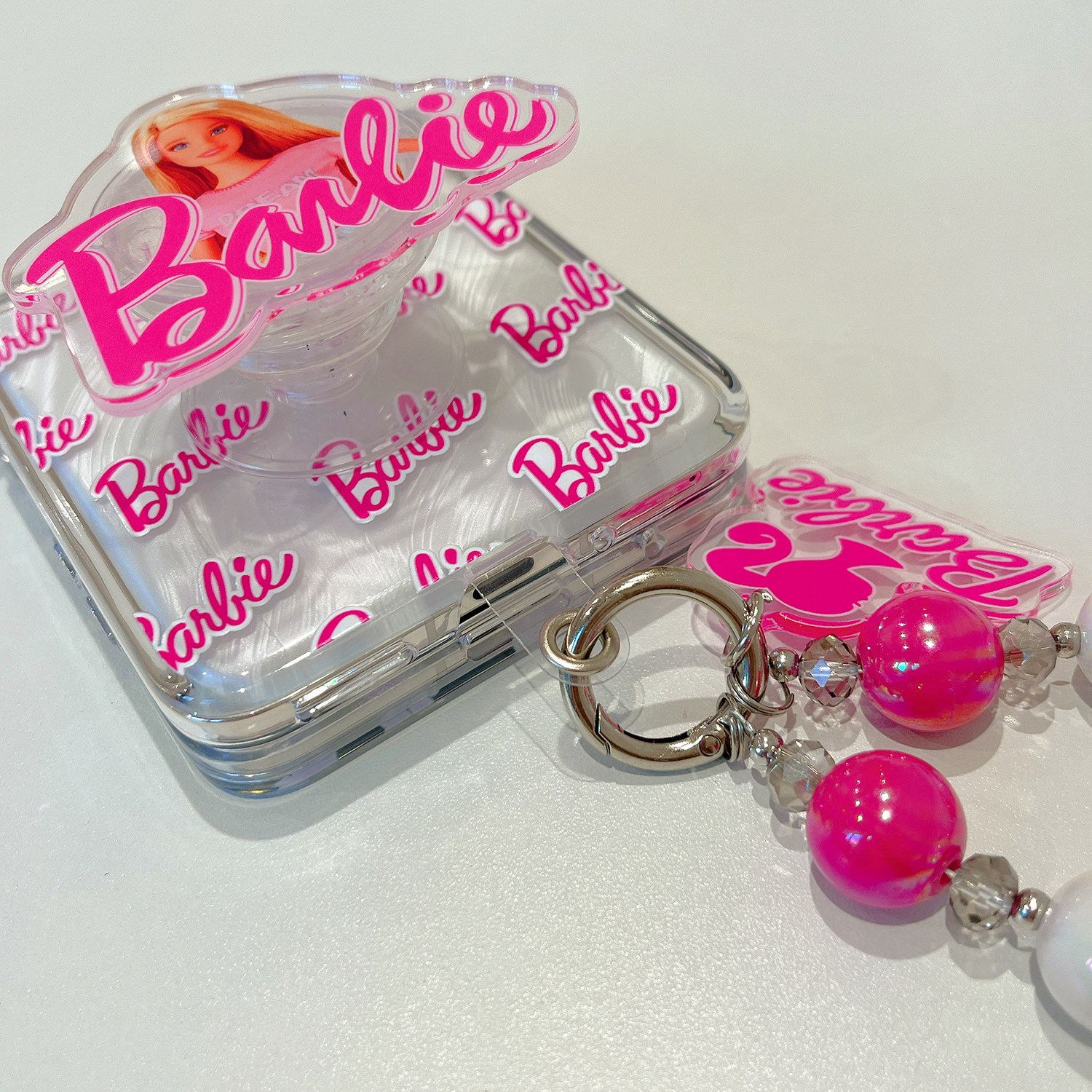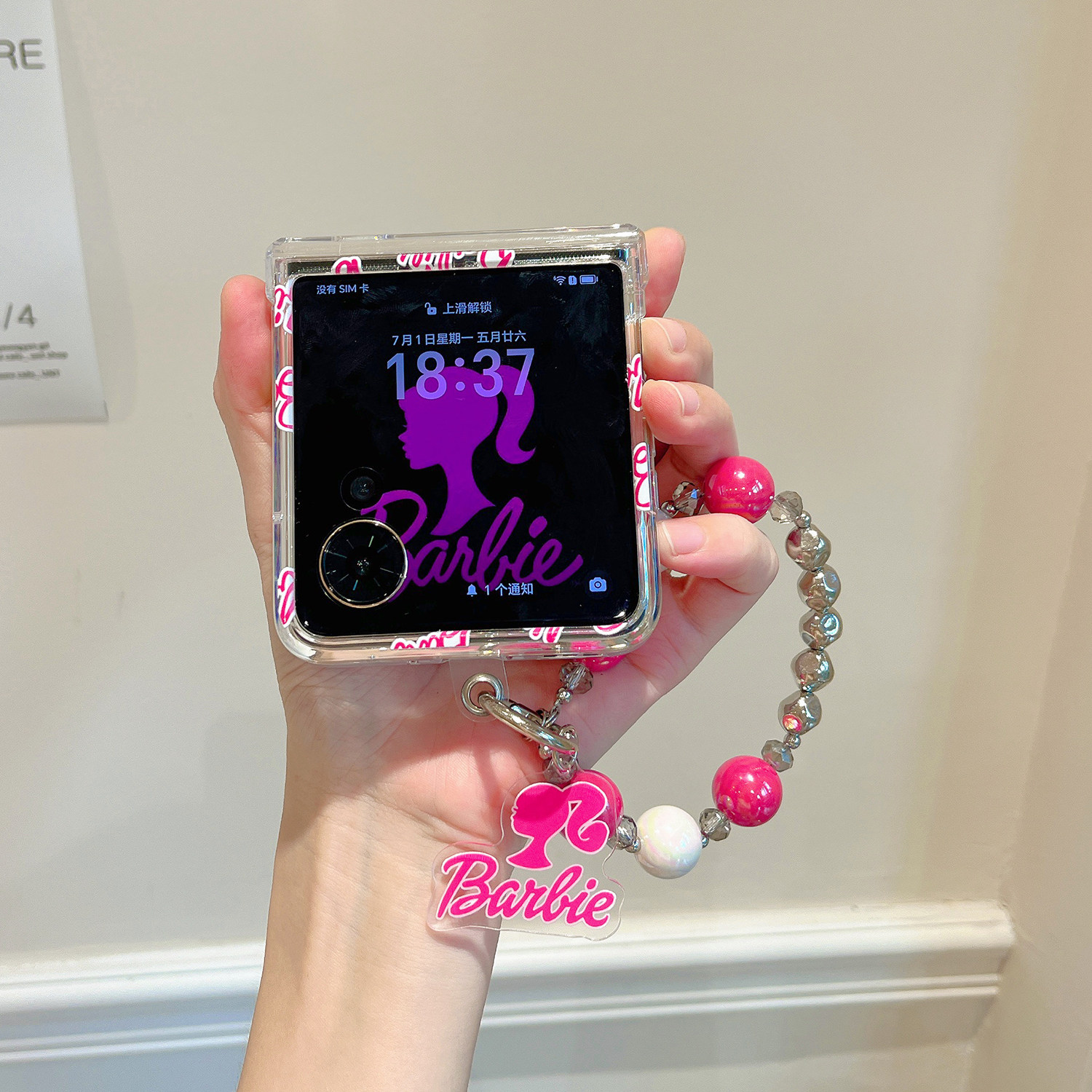 海恬 粉色芭比娃娃适用新款荣耀vflip折叠屏手机壳小米mixflip包铰链透明摩托罗拉razr50保护套支架手链硬壳