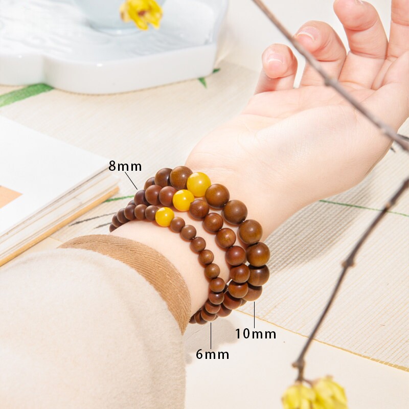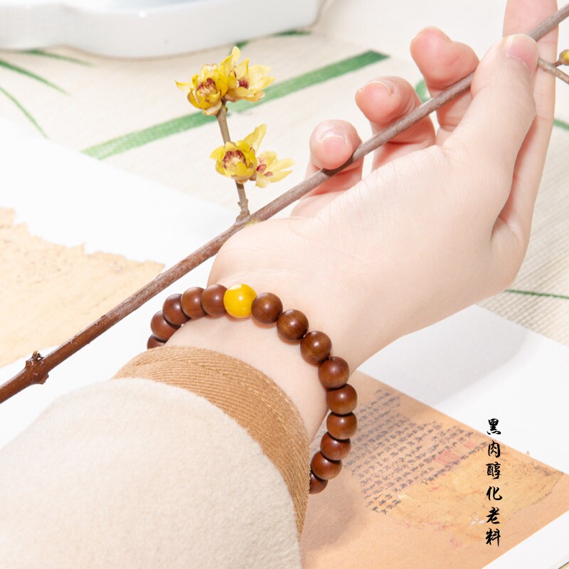 彦人韵印度老山檀手串女手链檀香木蜜蜡沉水文玩佛珠檀木绿松石