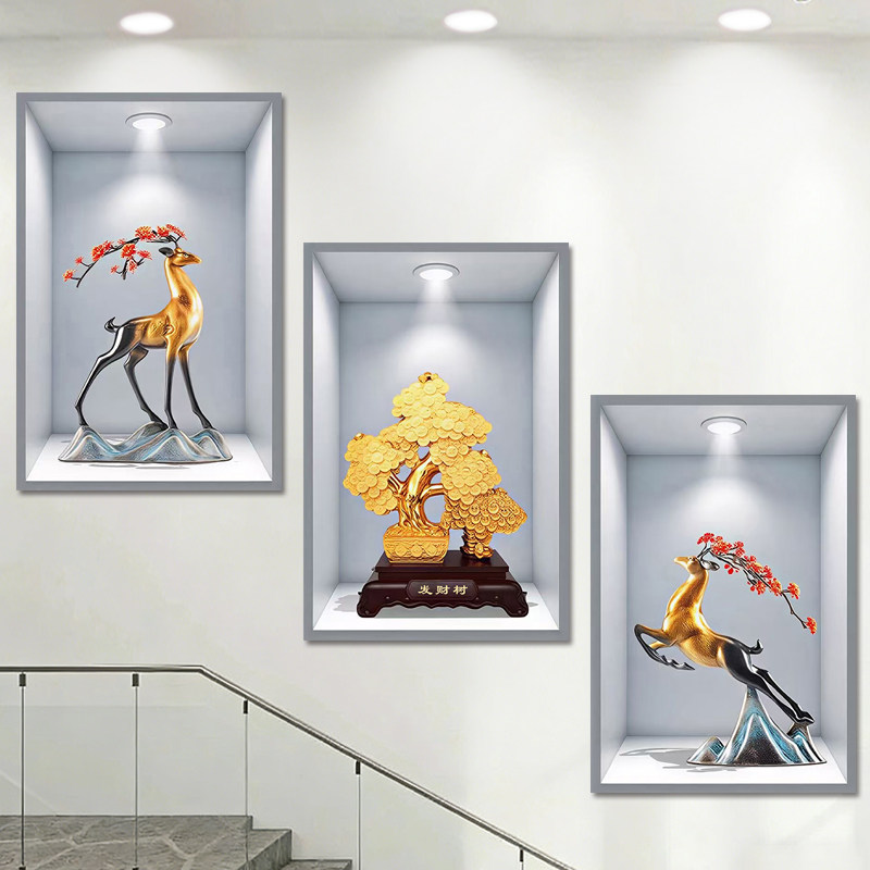 复式楼梯口间装饰画现代简约楼道三联挂画客厅玄关走廊过道墙壁画