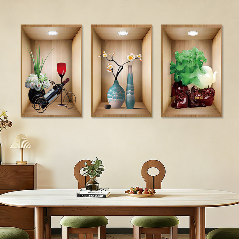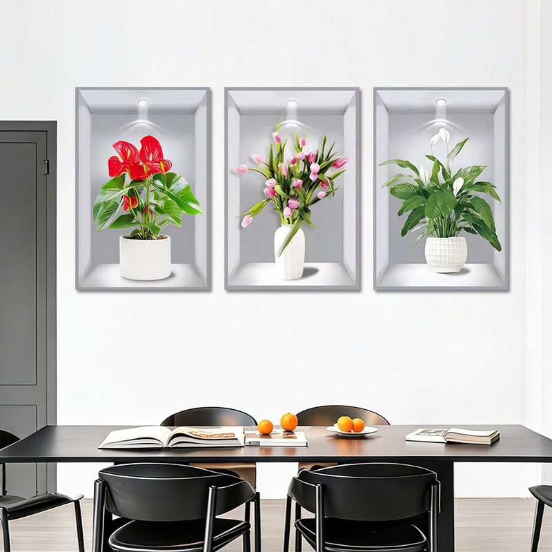 植物花卉3D效果盆栽贴画过道楼梯装饰画宾馆餐厅壁画自粘画