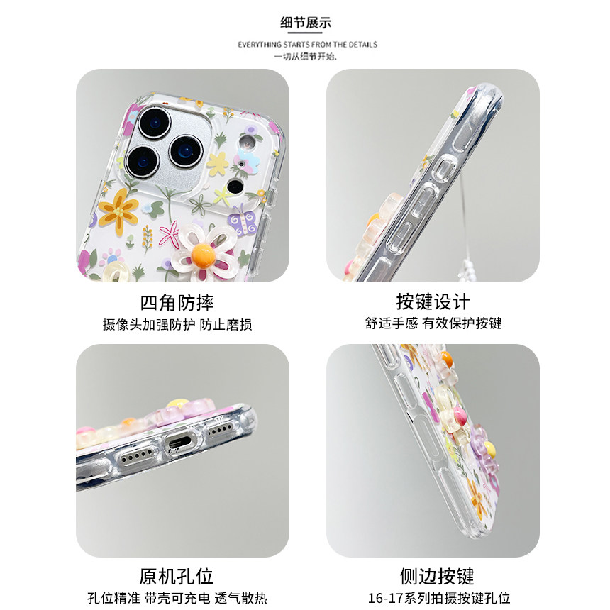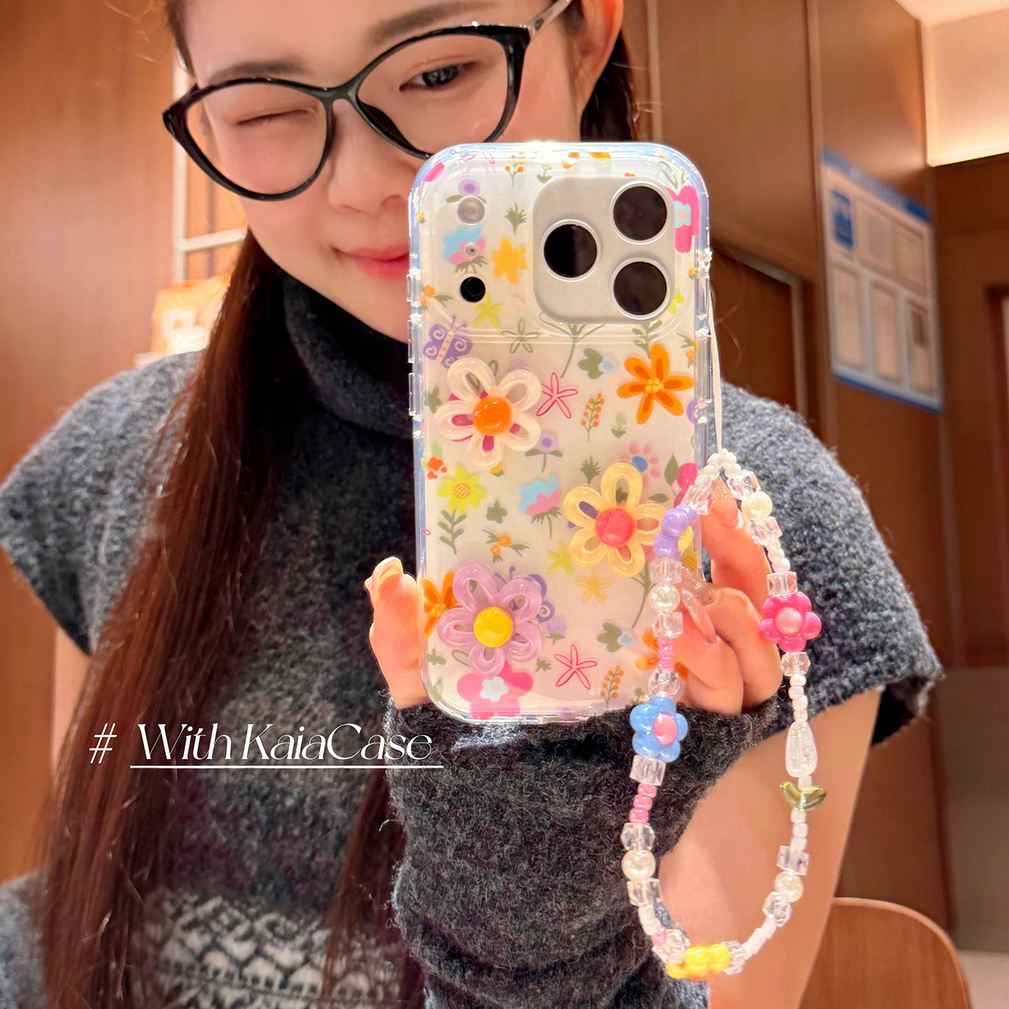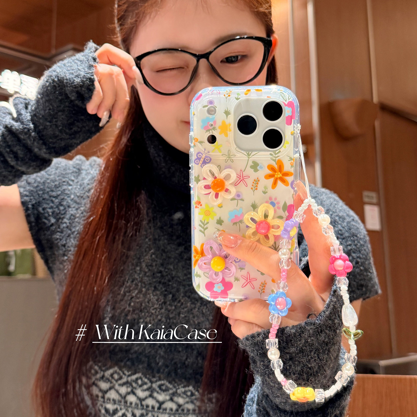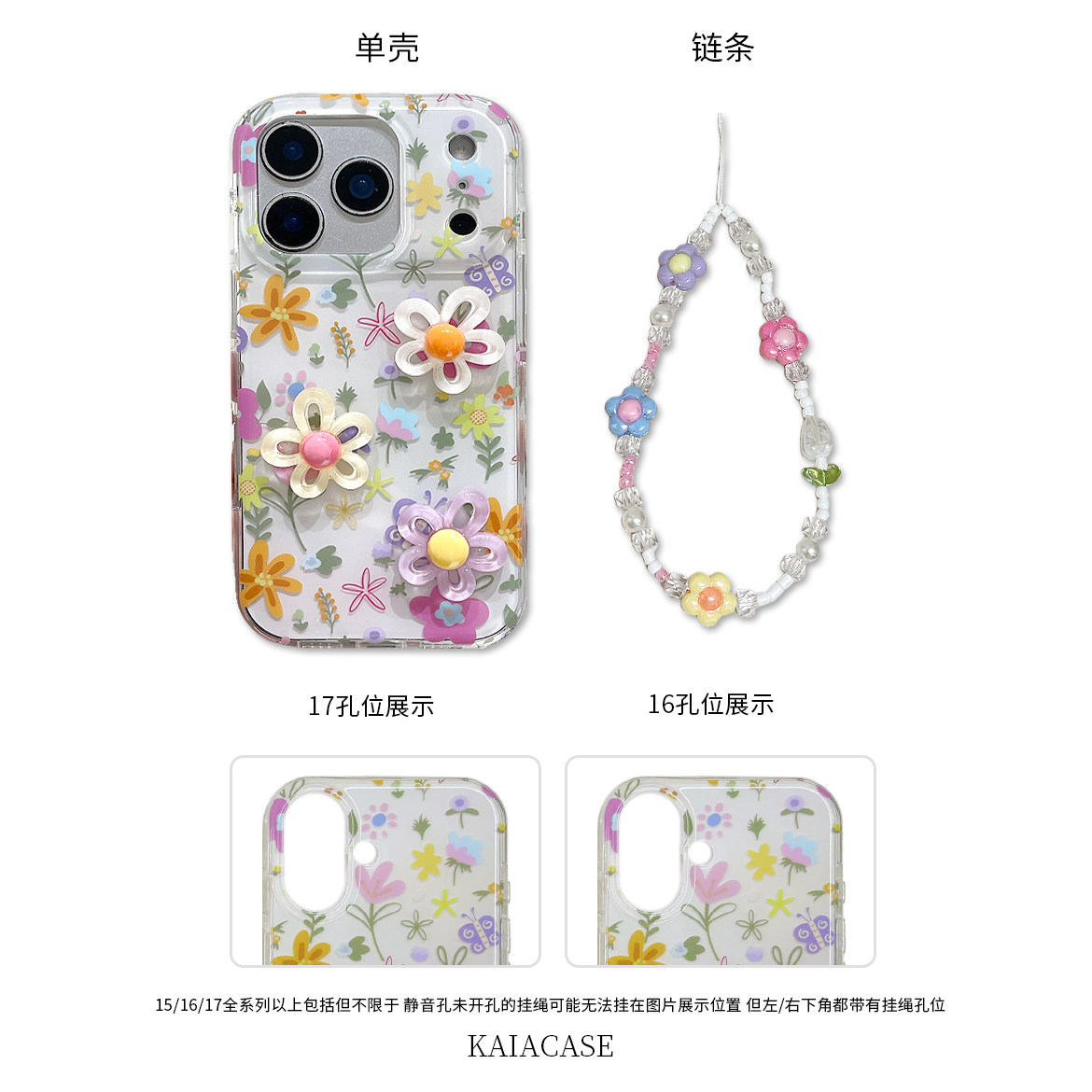 kaia 春款ins彩色立体花朵适用苹果17promax手机壳iphone16pro新款17女14pro带链条15pro全包双层防摔手机套