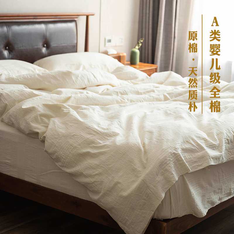 A类日式水洗四件套个性民宿纯白色酒店被套床单裸睡床上用品