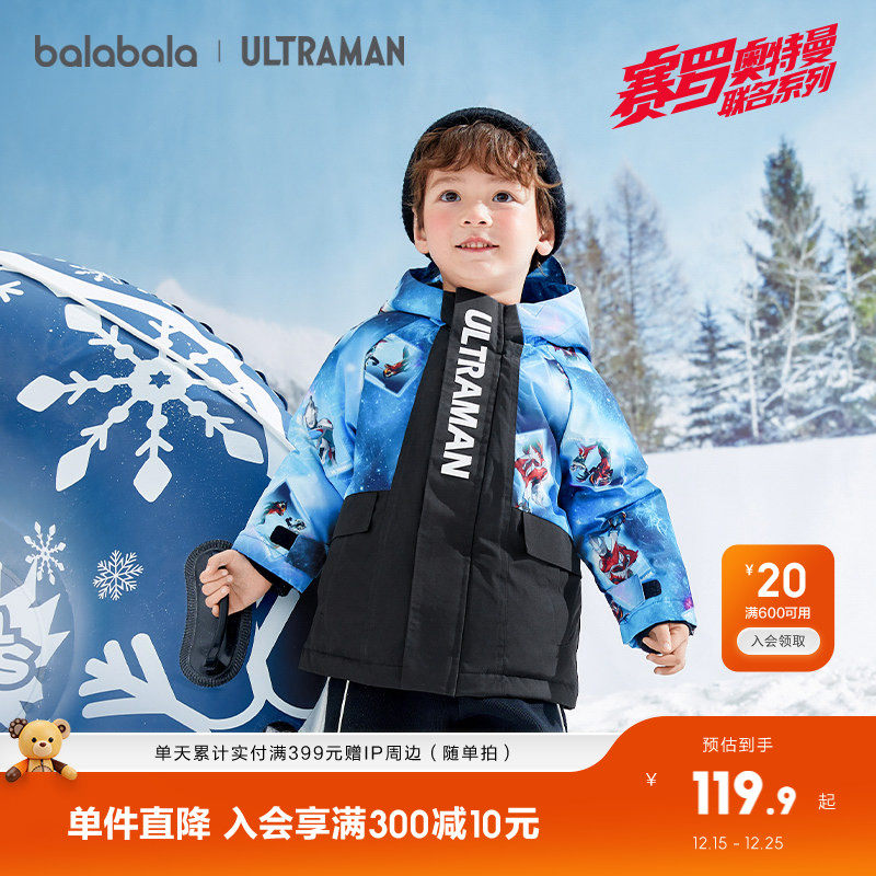 【奥特曼IP】巴拉巴拉童装男童羽绒服时尚印花外套儿童连帽冬装潮
