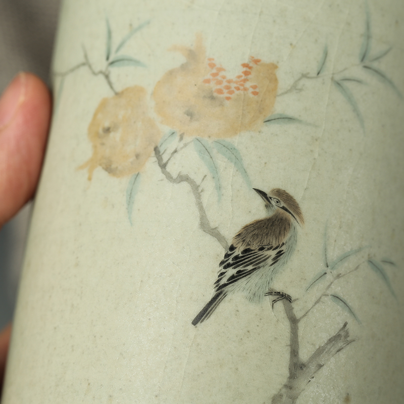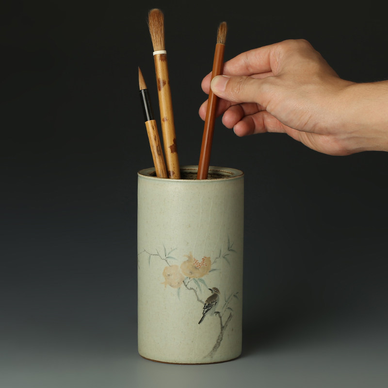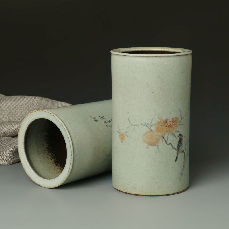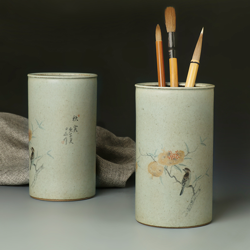 秋实图笔筒 景德镇匠人手绘陶瓷器文房笔筒古董收纳收藏品小摆件