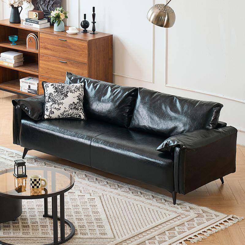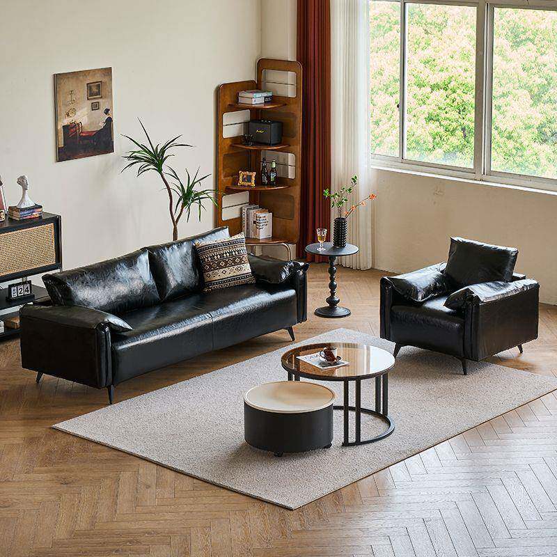 黑色沙发小户型客厅现代简约公寓卧室出租房复古油蜡皮艺双人沙发