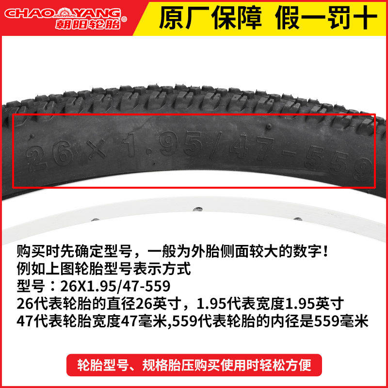 朝阳自行车外胎26寸山地车专用轮胎 1.75X1.95耐用型自行车轮胎