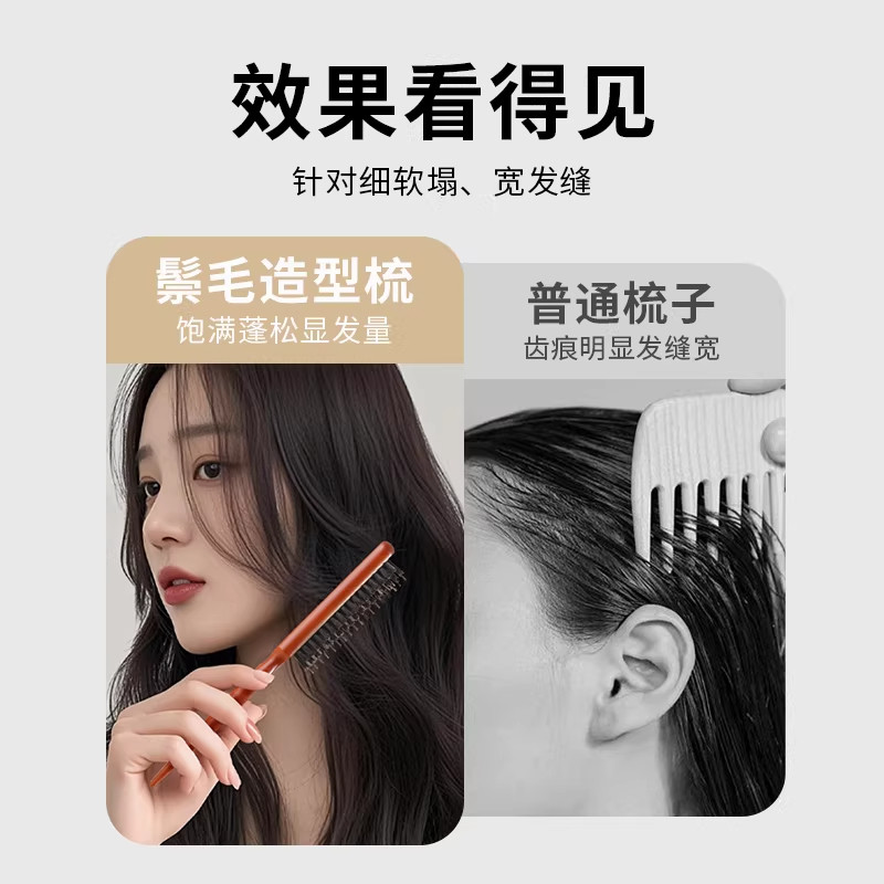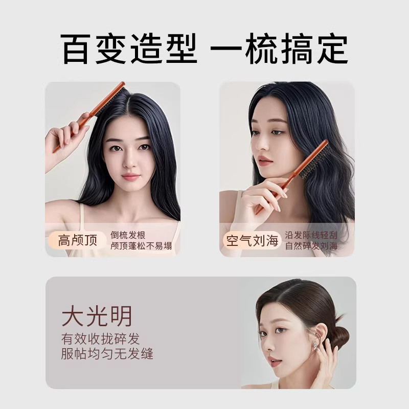 猪鬃毛窄齿梳子蓬松头发高颅顶三排齿打毛美发头发缝盘发专用尖尾