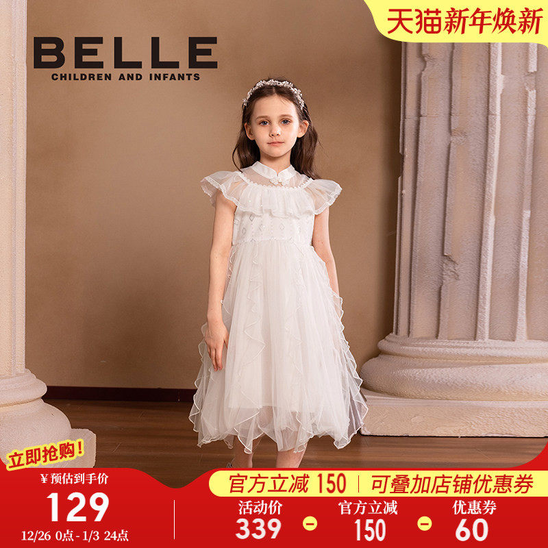 百丽童装小女孩公主裙夏季新款女童立领网纱裙儿童甜美优雅裙子