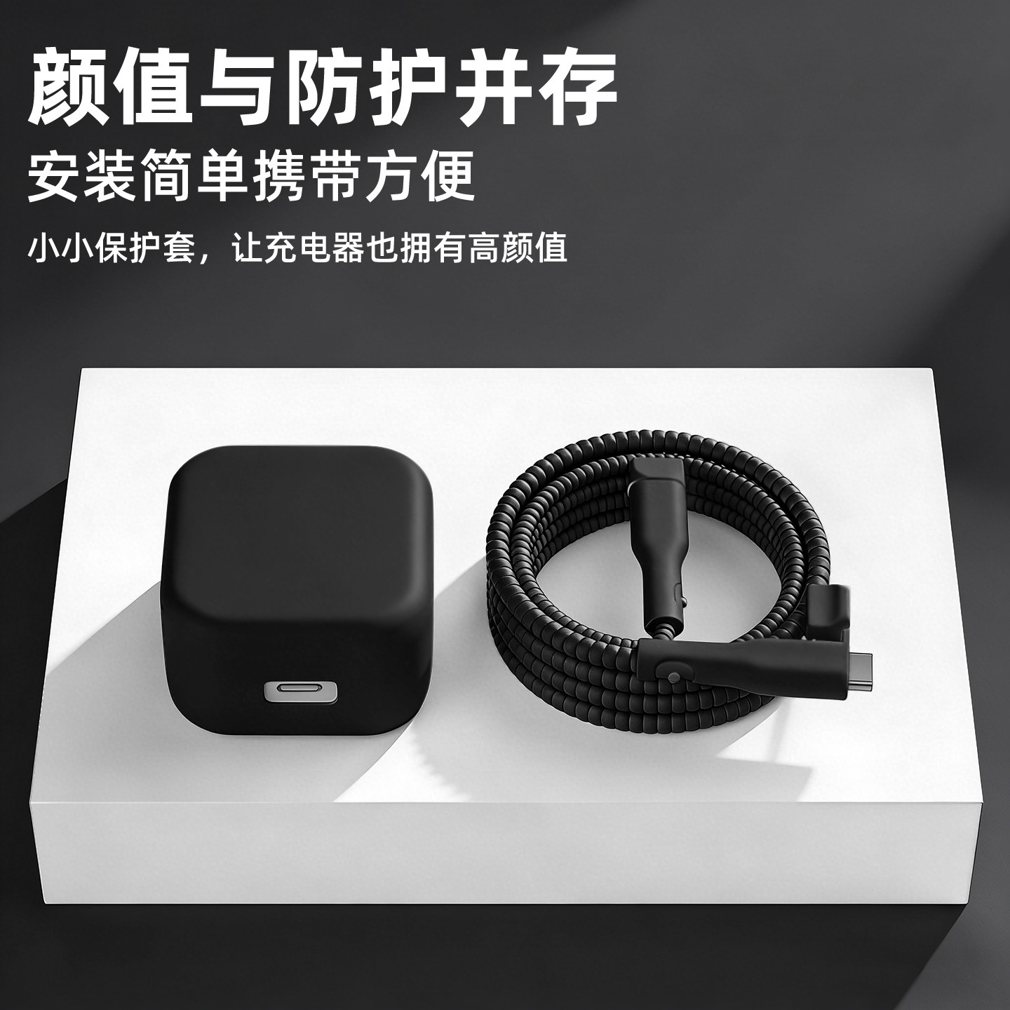 适用苹果40W充电器保护套iPhone17ProMax快充头套iPhone17Pro17全包硅胶软壳耐脏防尘数据线保护缠绕线纯色款