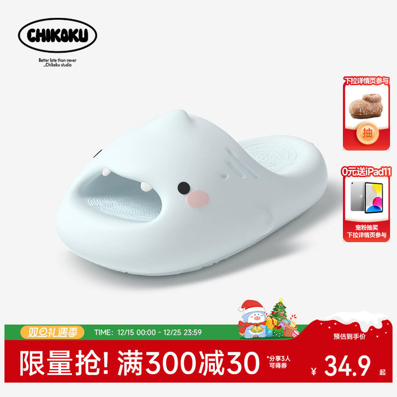 chikoku鲨鱼拖鞋女新款家居室内可爱厚底浴室洗澡防滑情侣拖鞋男
