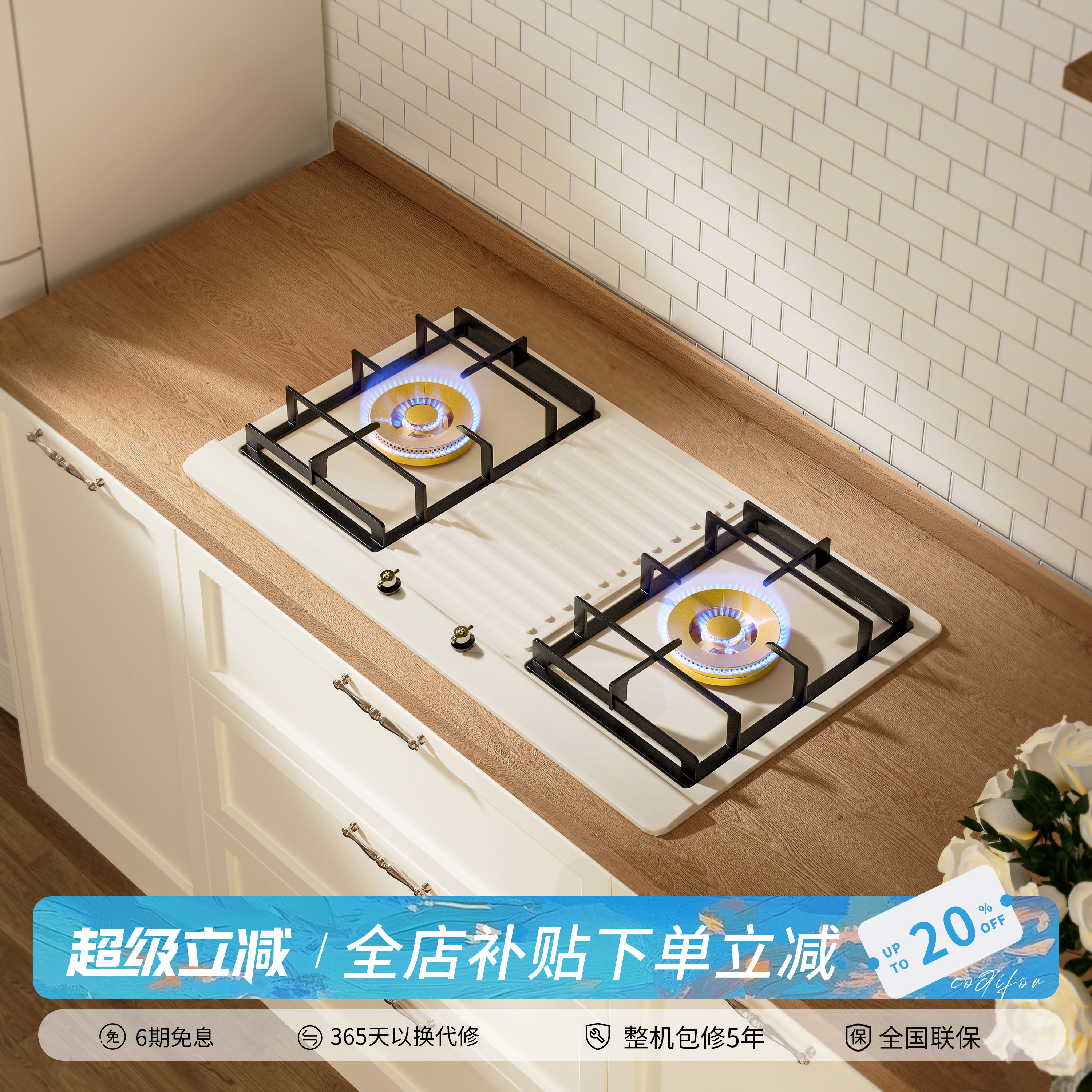 科迪弗复古风煤气灶燃气灶双灶家用奶油白嵌入式天然气定时猛火灶