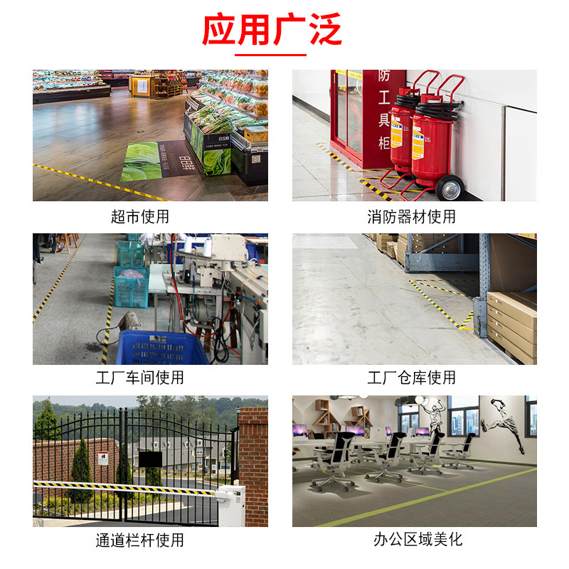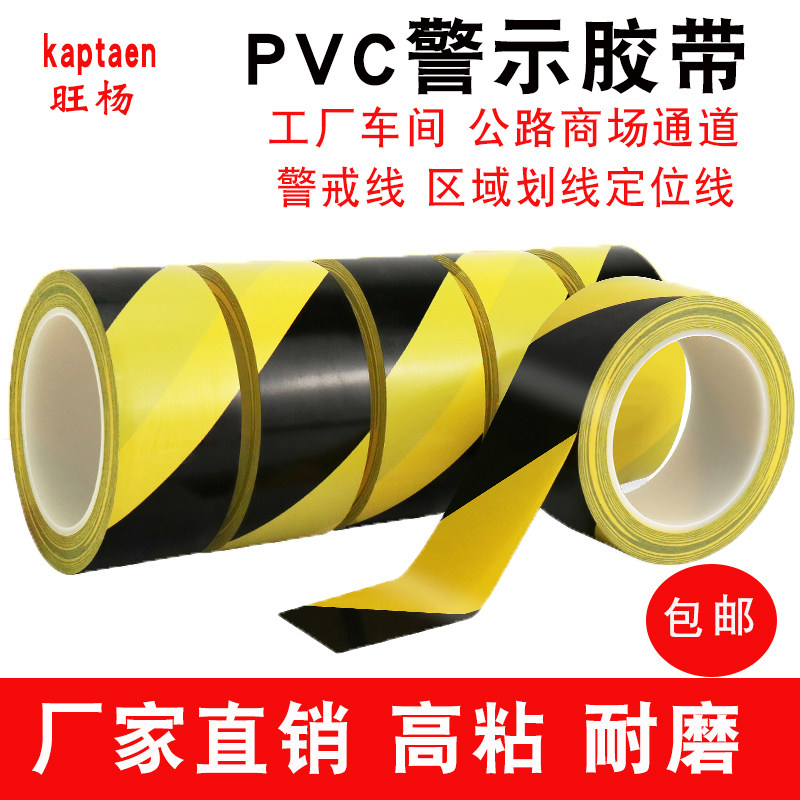 PVC黑黄警示胶带安全地标消防警戒隔离地板斑马胶带标识地贴警戒黄色地板标识彩色划线定位胶带