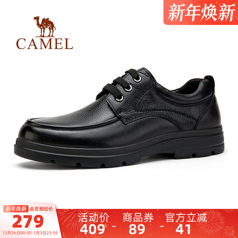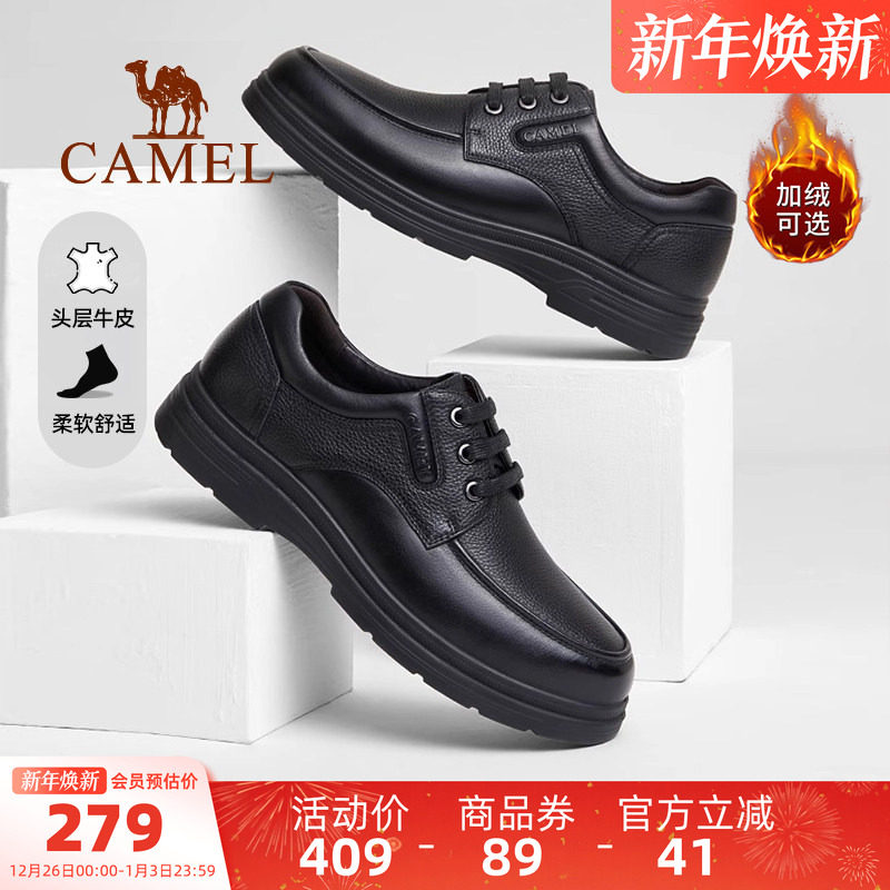 骆驼官方店男鞋2025秋冬新款休闲皮鞋男士真皮软底商务加绒爸爸鞋