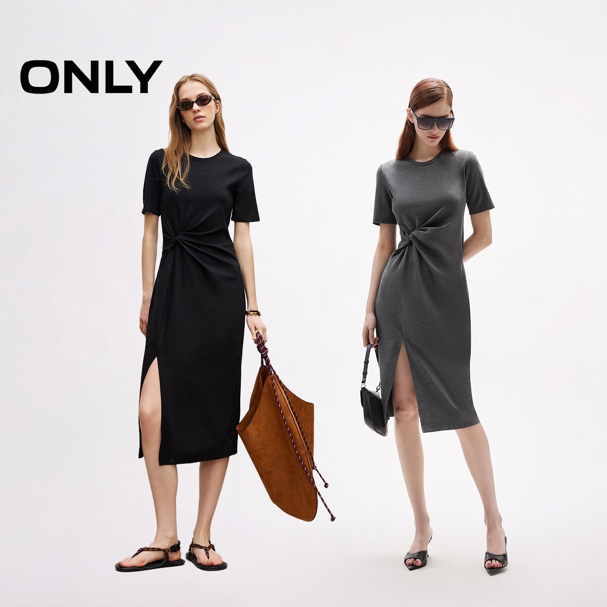 【ONLY奥莱】春季新款时尚休闲中长款开叉收腰显瘦连衣裙女