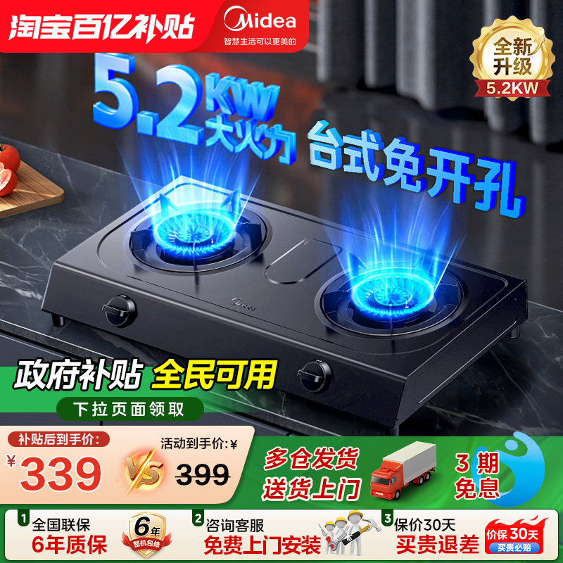 政府补贴美的燃气灶具双灶煤气灶天然气灶台式家用免开孔安装TX3