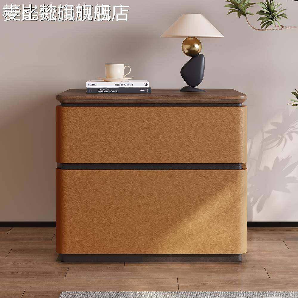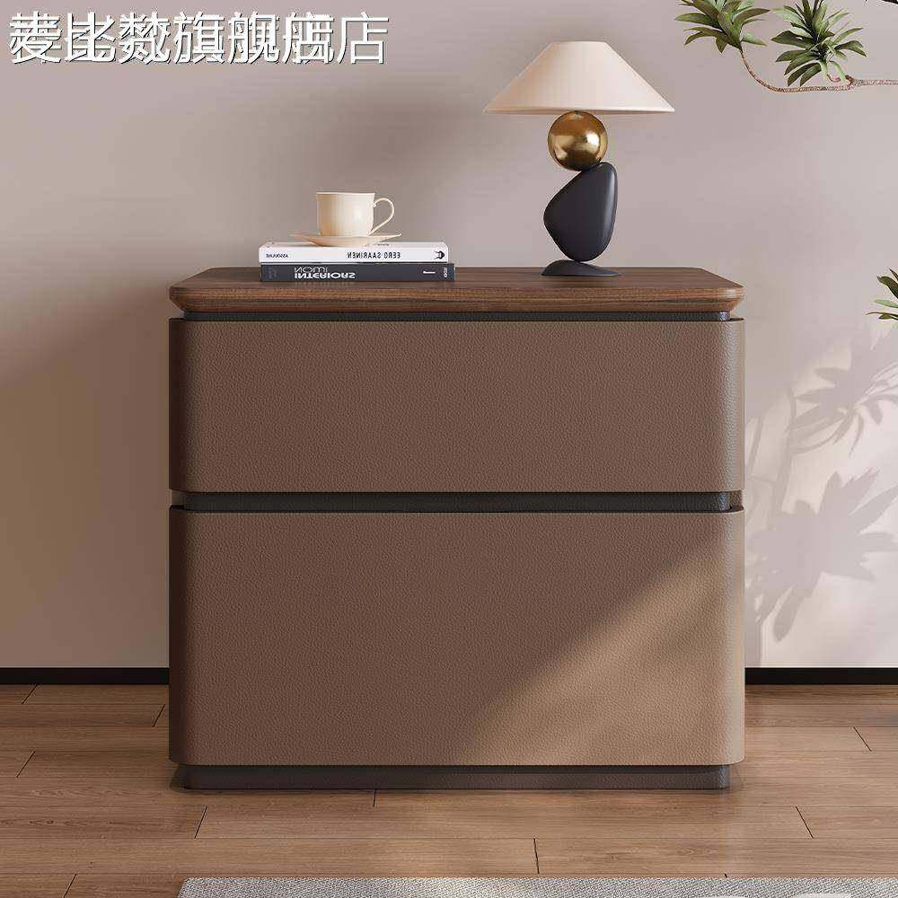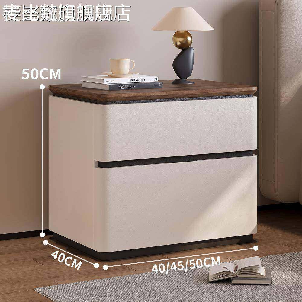 麦比梵中古风实木床头柜带密码锁家用主卧室床边置物柜子简约现代免安装摆件饰品垫垫床笠拉车