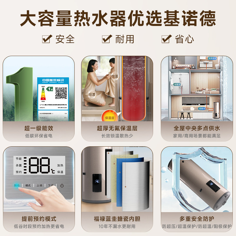 基诺德电热水器150L200升300大容量储水容积式落地美容理发店商用