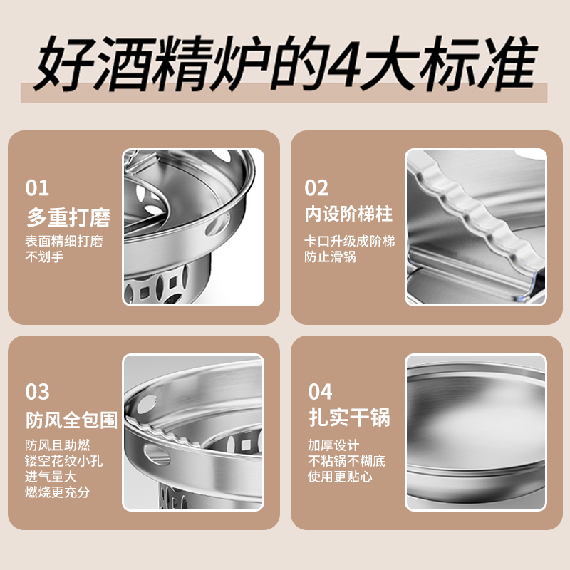 酒精炉子单人小火锅干锅锅具专用一套家用加厚不锈钢酒精锅仔商用