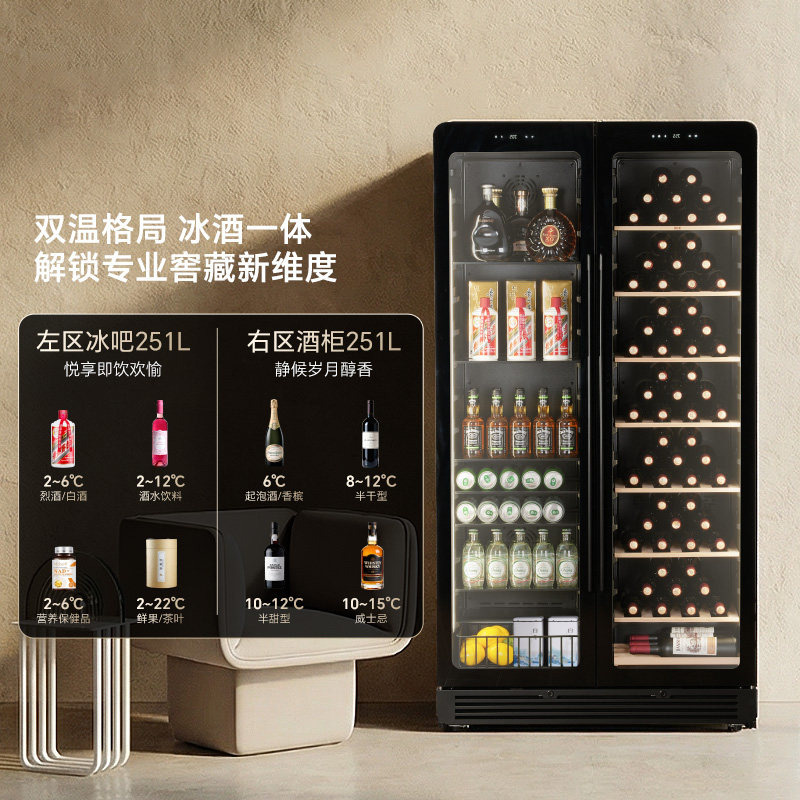 【自营】HCK高端JCC-508SPEK红酒柜恒温客厅家用冰吧嵌入超薄双门