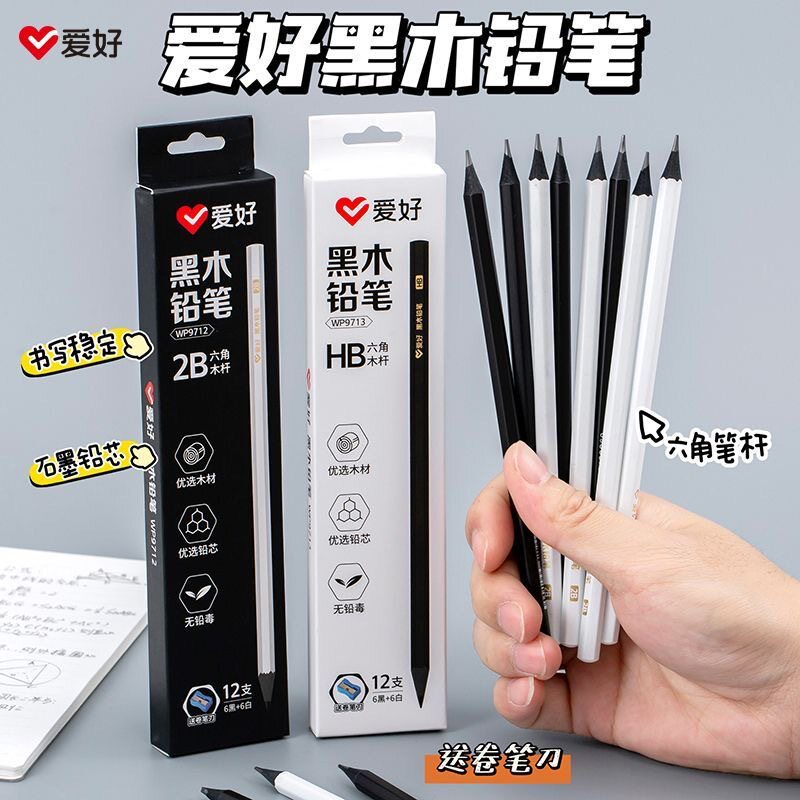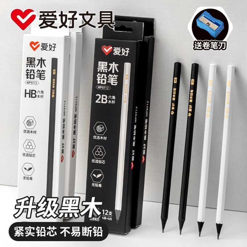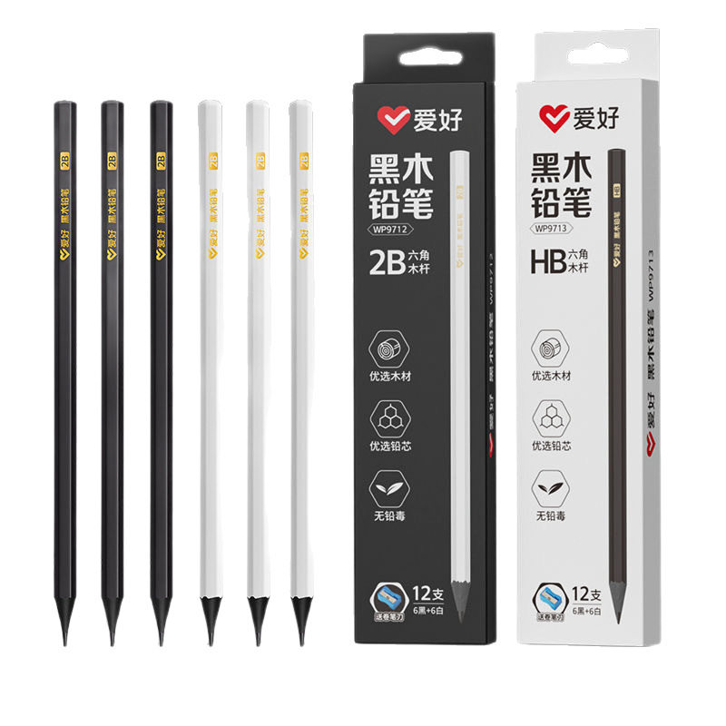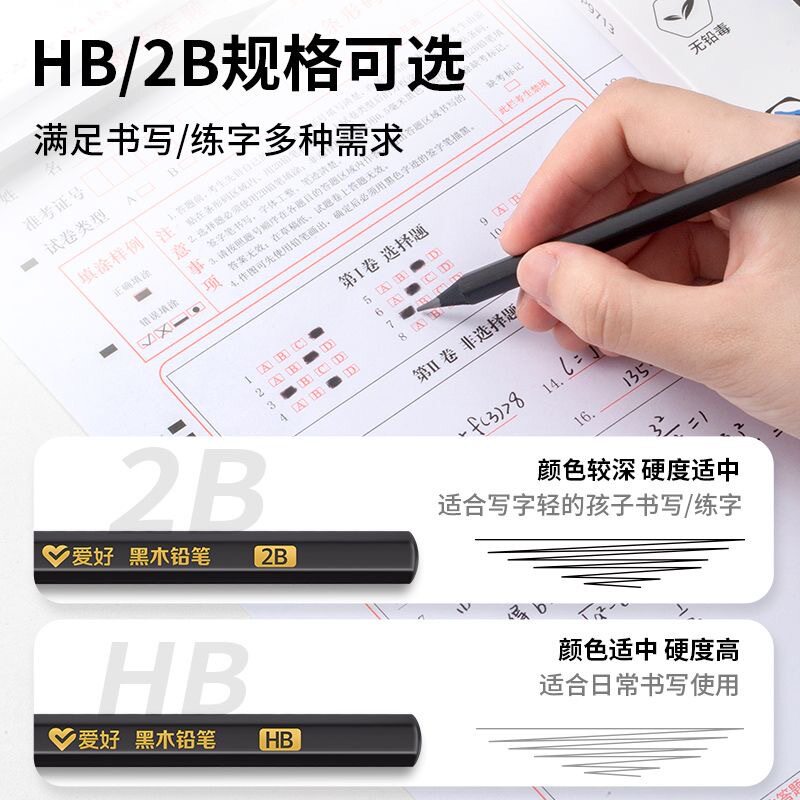 爱好高端黑木hb铅笔小学生专用练字笔安全无毒一二年级学生2b铅笔黑色儿童幼儿园学习文具用品套装考试写字笔