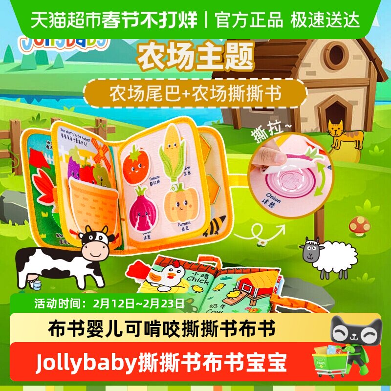 jollybaby尾巴布书立体触感早教婴儿撕撕书宝宝认知益智玩具0-1岁