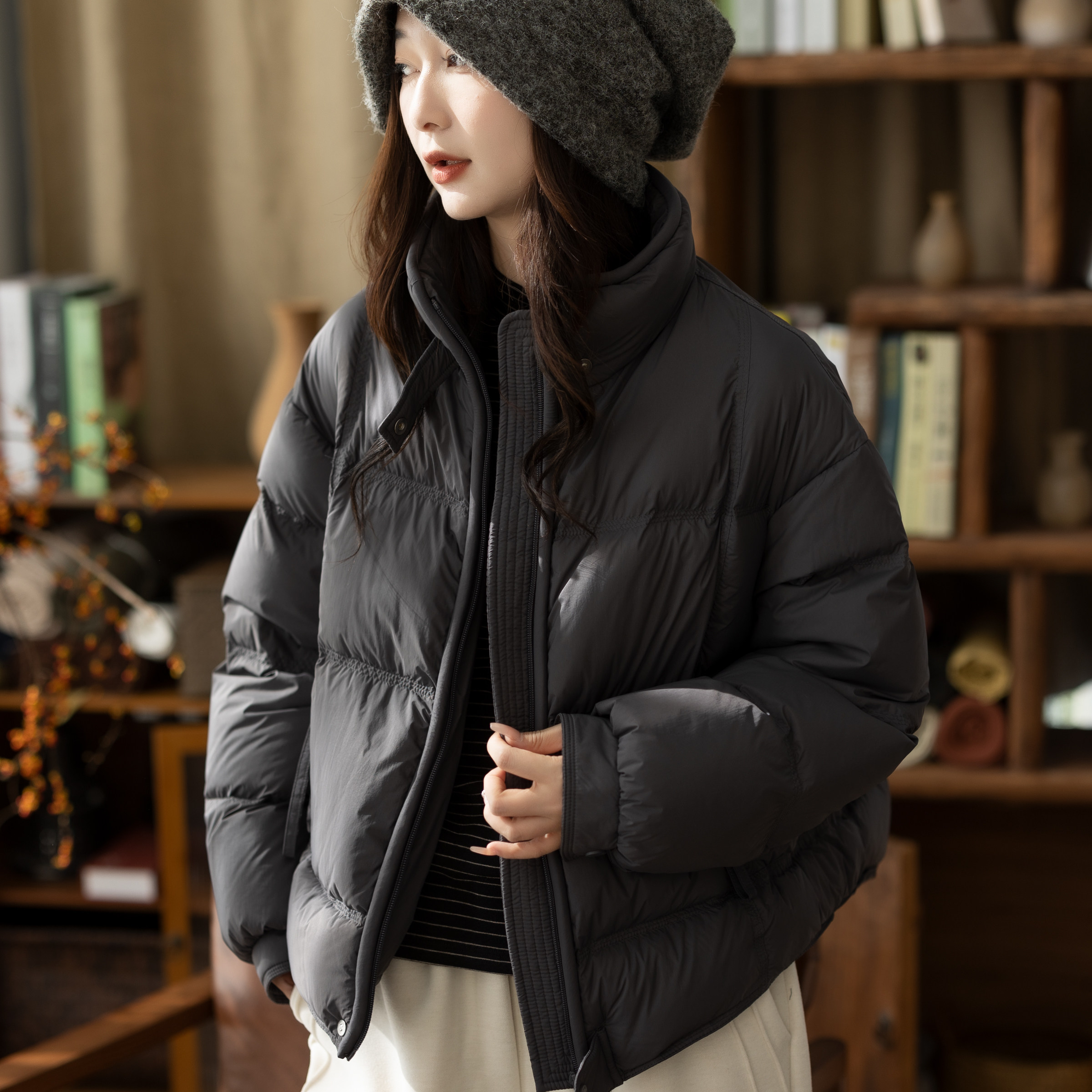【鞠婧祎同款】鸭鸭2025年冬新款百搭短款女士纯色立领羽绒服外套