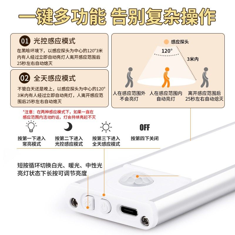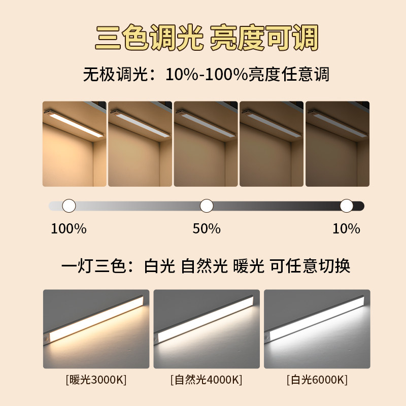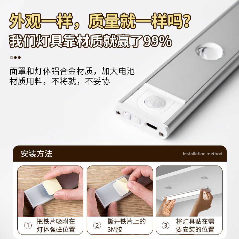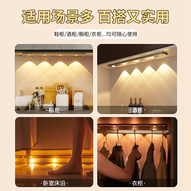 人体感应灯带自粘无线免插电led橱柜玄关展示柜酒柜充电磁吸灯条