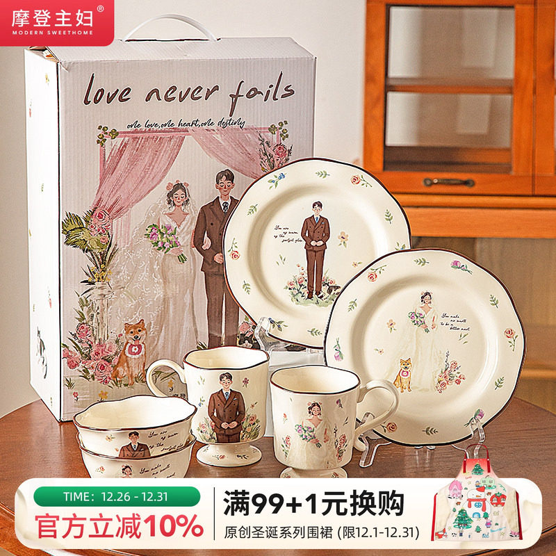 摩登主妇餐具新婚结婚订婚礼物送新人闺蜜实用的情侣碟筷碗盘套装