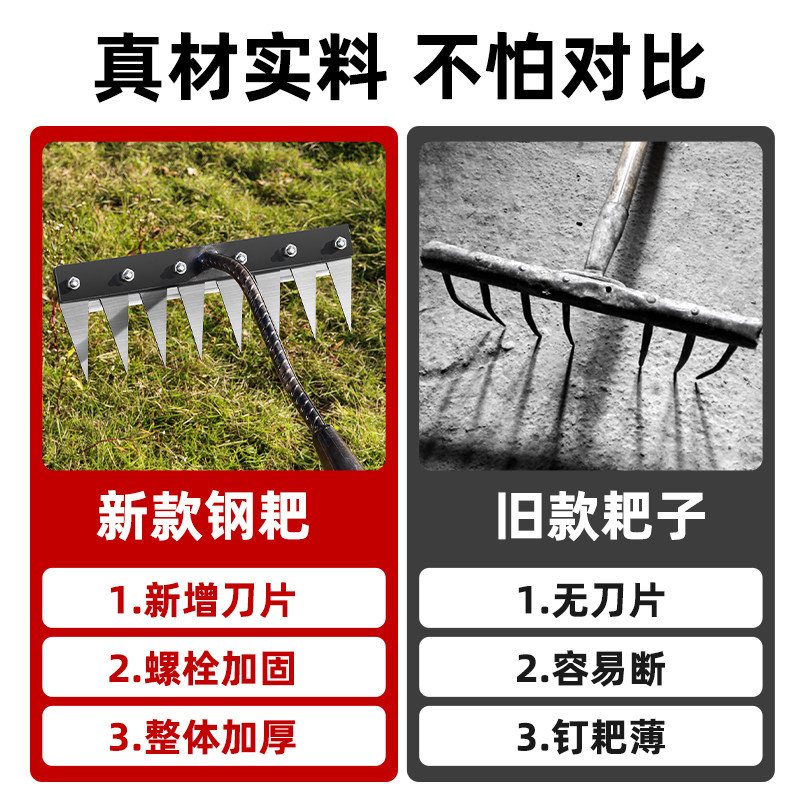 除草神器工具锰钢耙子五齿钉耙锄草种菜犁地农具农用锄头农具大全