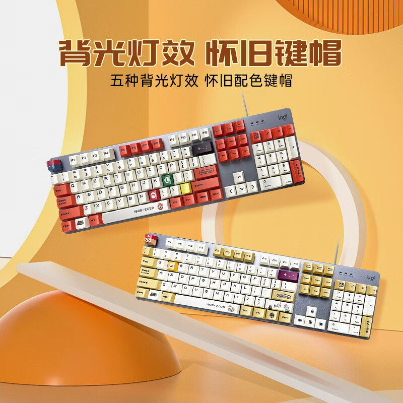 罗技K845有线机械键盘马里奥高达定制键帽G102鼠标家游戏带背光