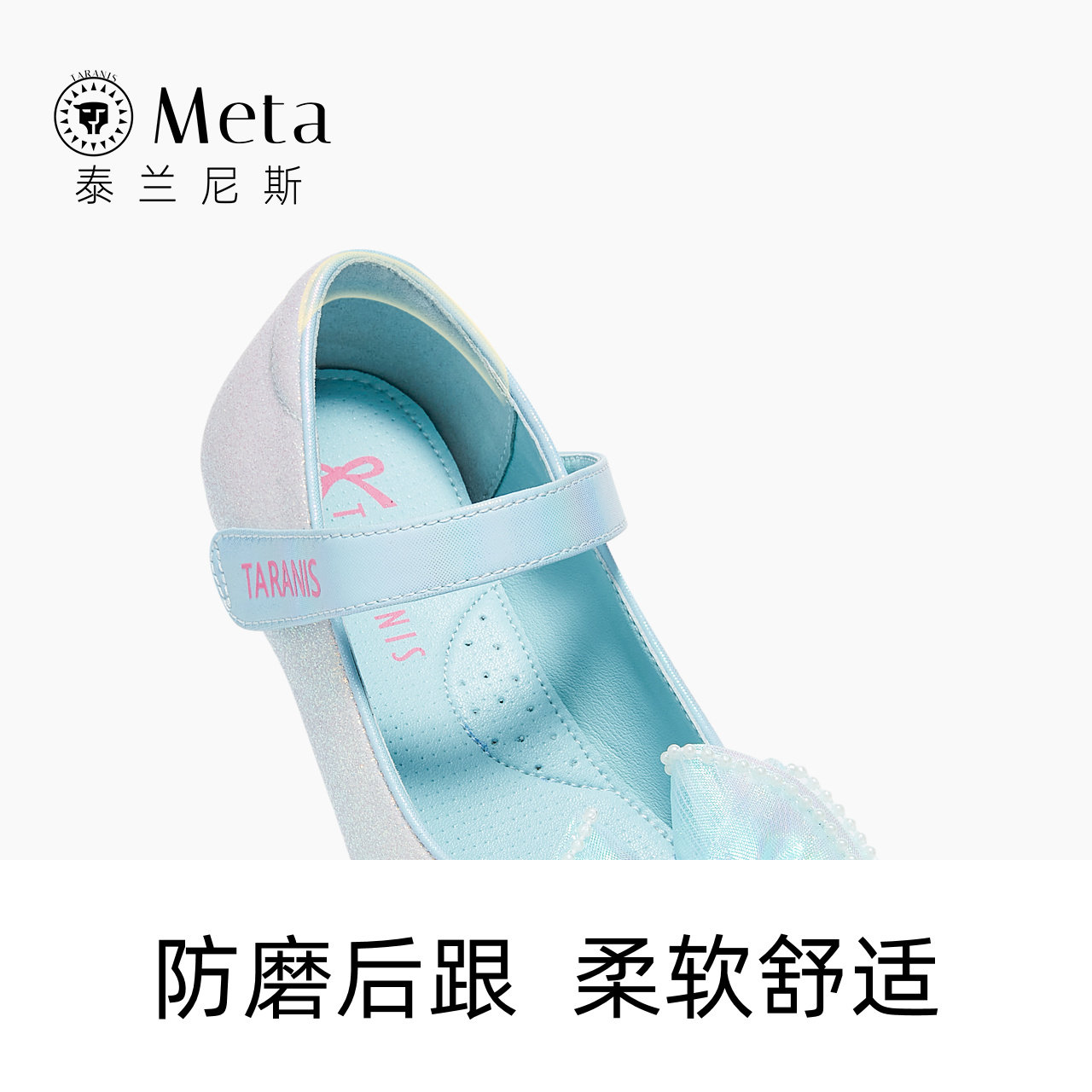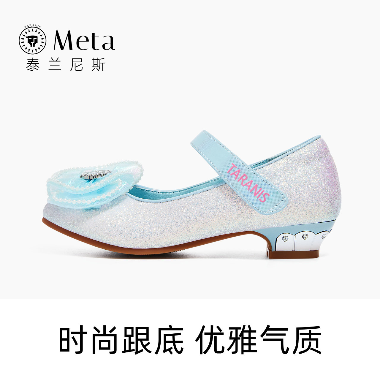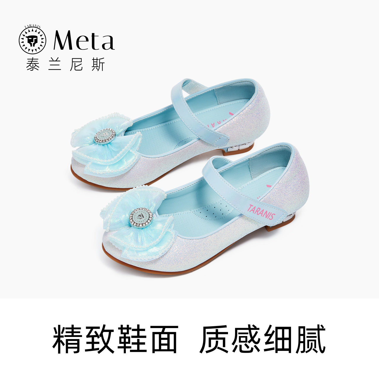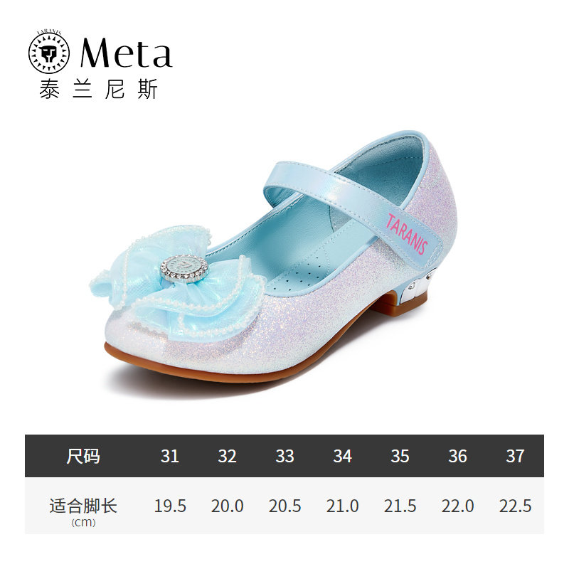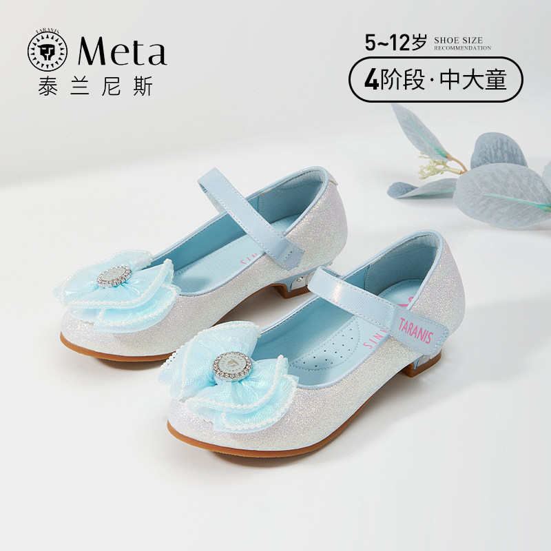 泰兰尼斯meta儿童皮鞋女童水晶公主鞋春秋季新款小女孩蝴蝶结单鞋