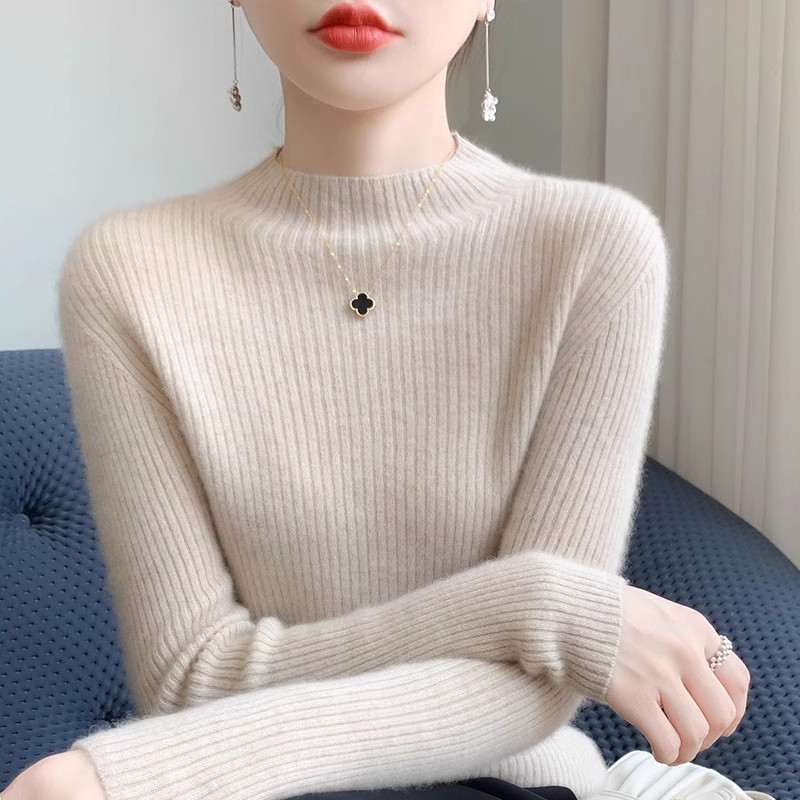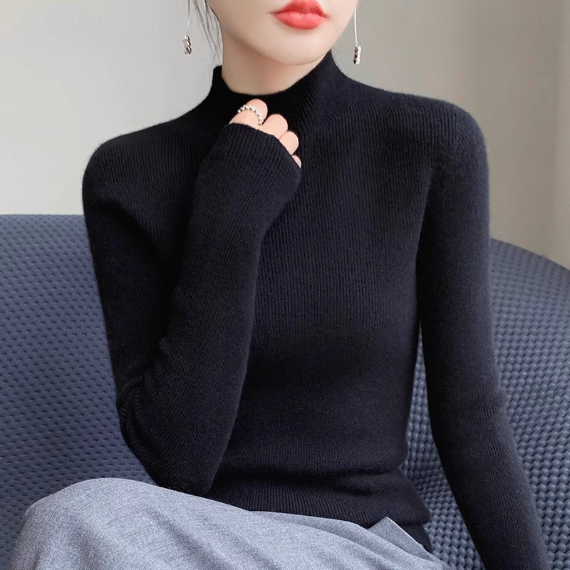 一线成衣无缝女半高领套头打底衫秋冬内搭毛衣修身长袖羊毛针织衫