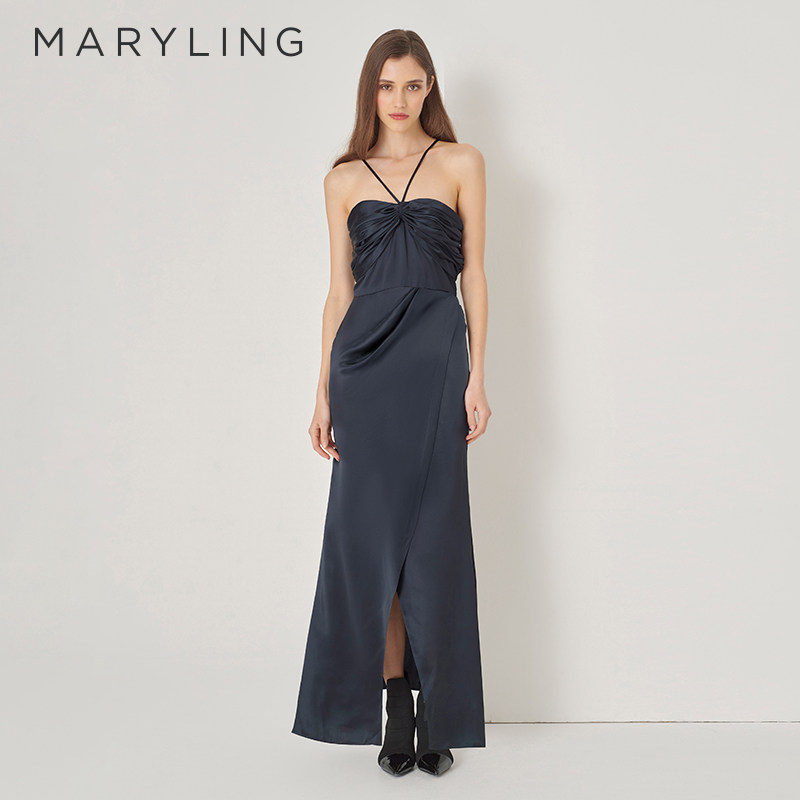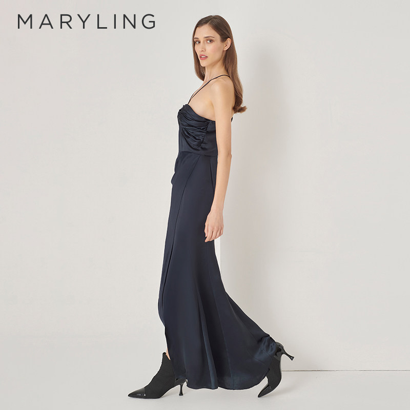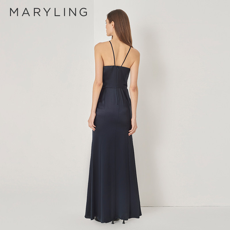 MARYLING玛俪琳秋季新品深蓝色抹胸吊带鱼尾礼服裙A1DGW68030