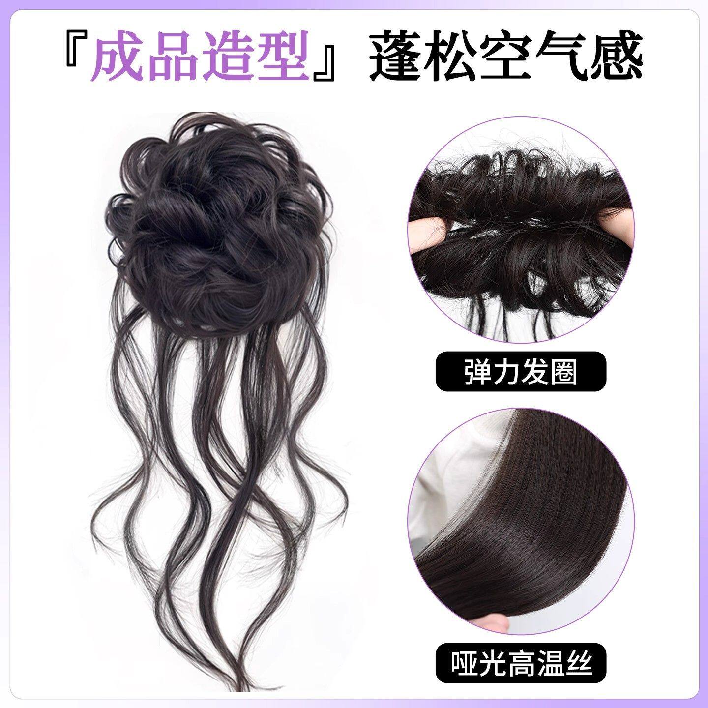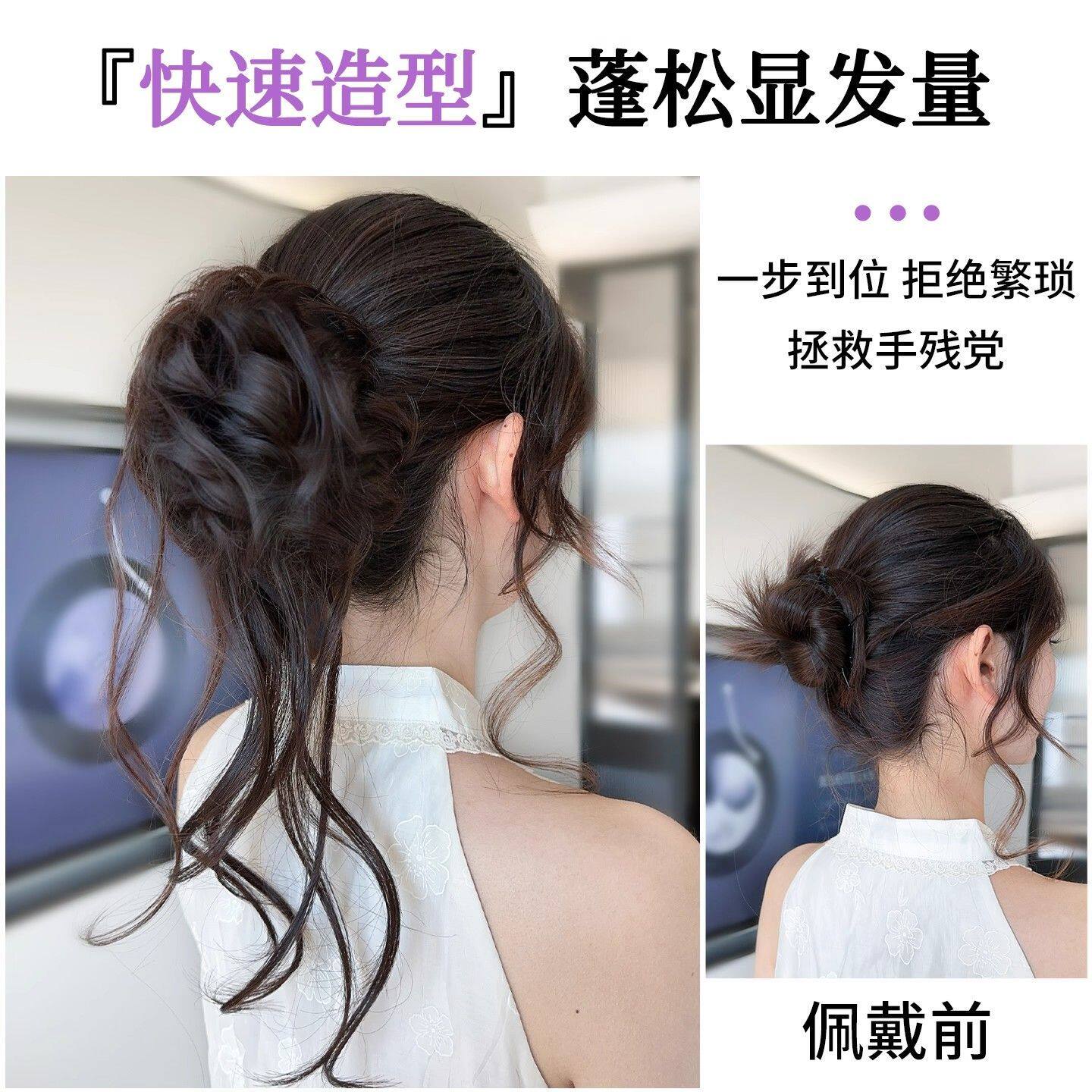 低扎丸子头假发鸡毛头抓夹盘发发包慵懒感造型头饰自然蓬松后脑勺