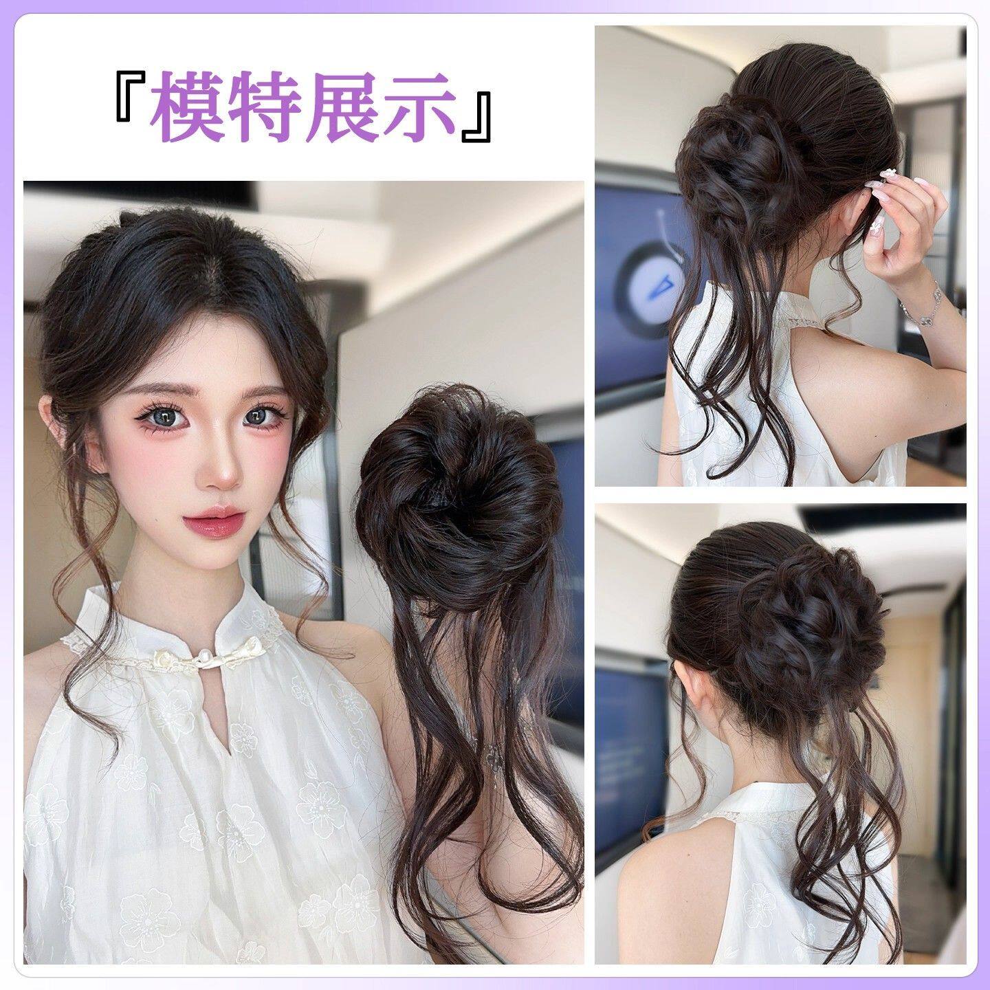 抽丝丸子头假发高颅顶增发量盘发神器饱满后脑勺新中式氛围感发包