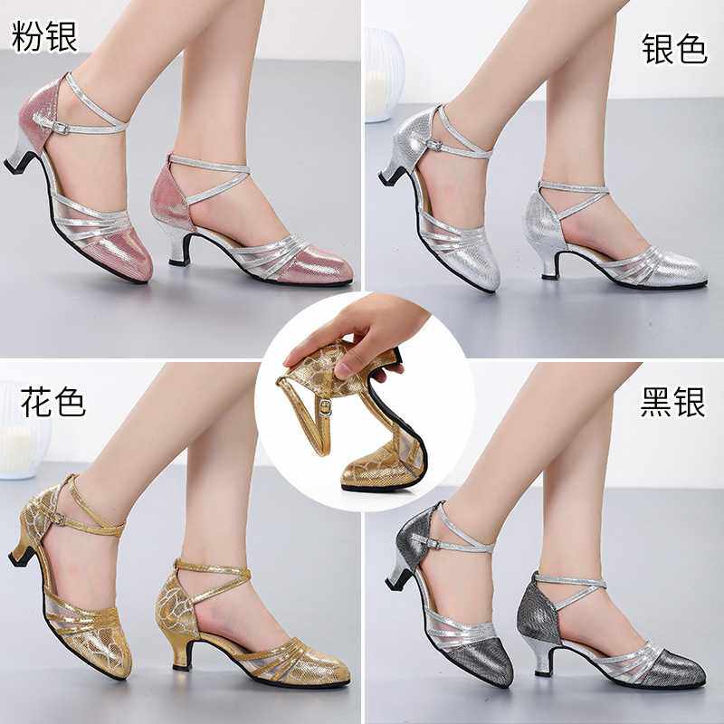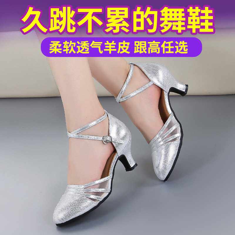 真皮网面广场舞鞋成人拉丁舞鞋女式四季舞蹈鞋摩登软底交谊