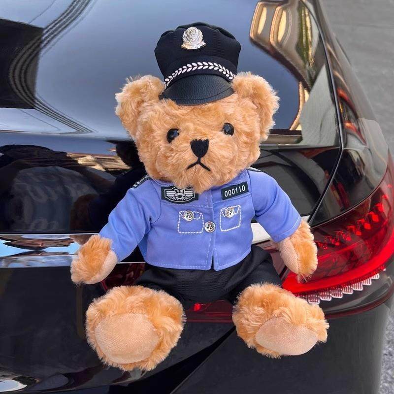 汽车尾部挂件交警小熊玩偶可爱卡通后备箱摆件车外摩托车警察公仔