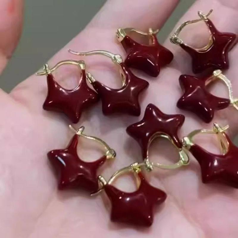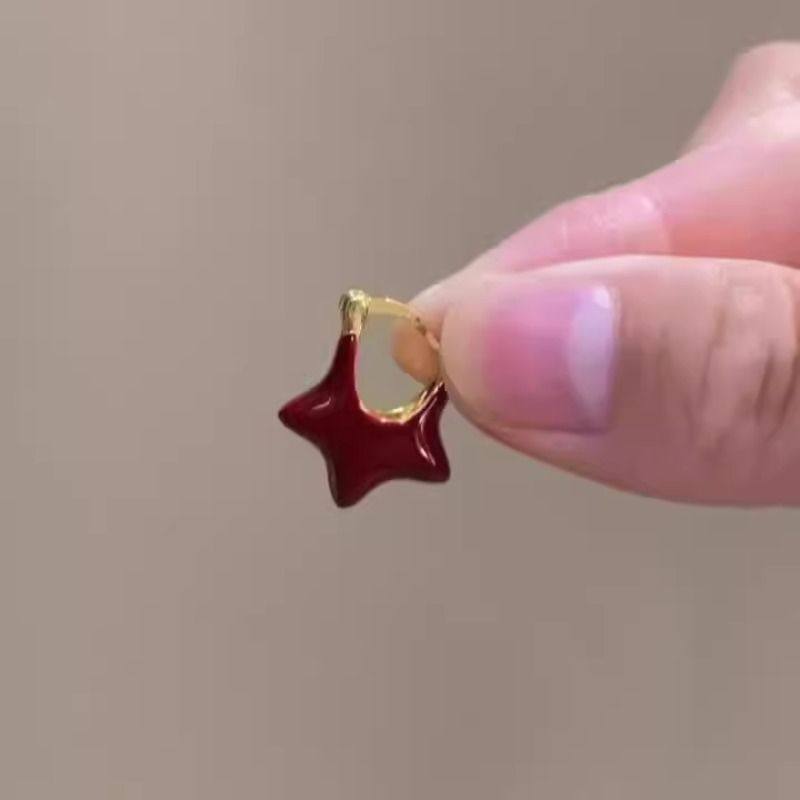 着迷 法式复古车厘子红色星星滴釉耳扣女港风秋冬新款耳环耳饰品