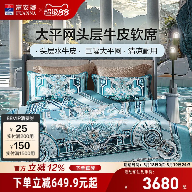 富安娜牛皮席可折叠头层牛皮软席家用单人双人高端夏季空调凉席子