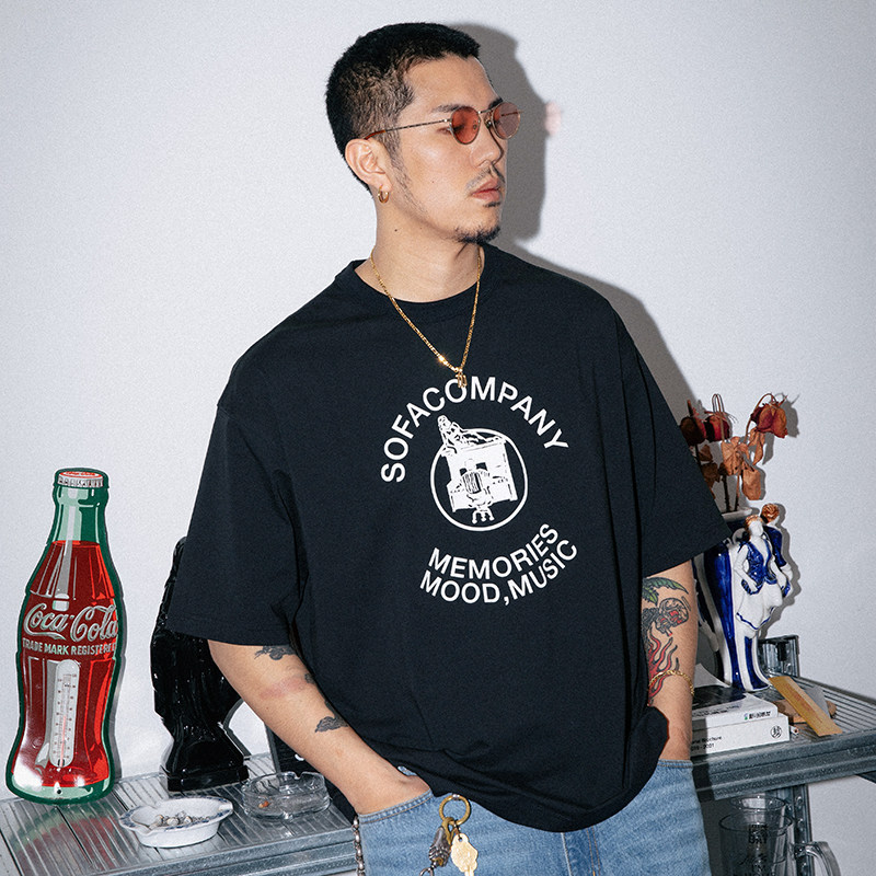 SUPERTOFU凉感抗皱 索罗娜 复古趣味手绘 弧形图案 短袖T恤