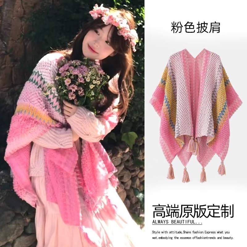 民族风披肩2025新款针织披风丽江云南旅游穿搭大理斗篷外搭围巾女