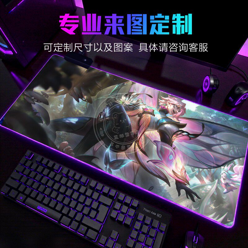 英雄联盟发光鼠标垫超大云顶之弈宿舍电脑桌工位办公桌防滑可定制