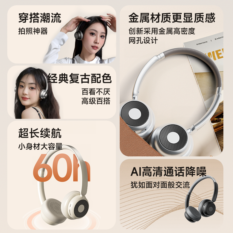 飞利浦TAH1129复古穿搭头戴式耳机无线蓝牙小巧潮流时尚高颜值女