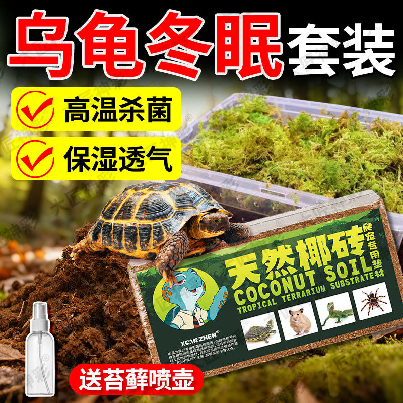 乌龟冬眠专用椰土椰砖爬宠饲养箱盒过冬套装神器保温箱垫料材苔藓