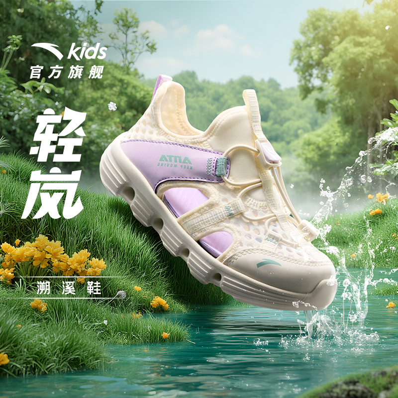 安踏儿童凉鞋女宝宝小童溯溪鞋透气洞洞鞋女童新款户外涉水沙滩鞋