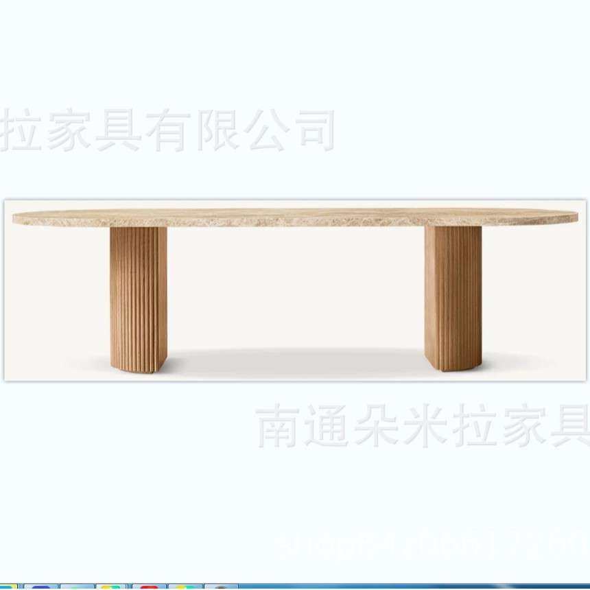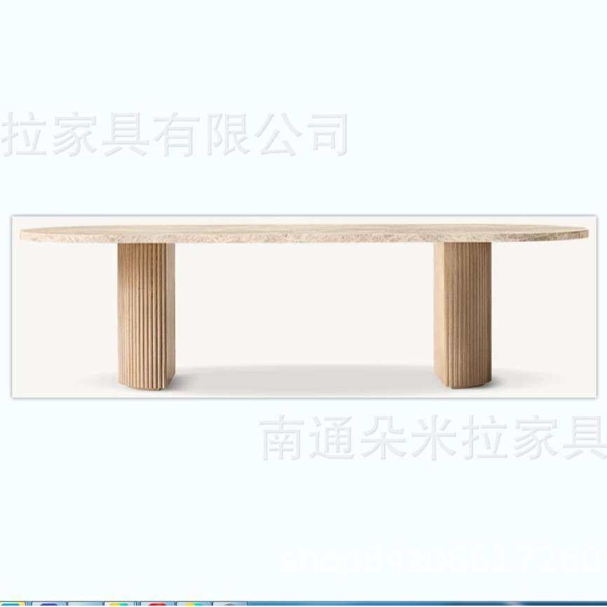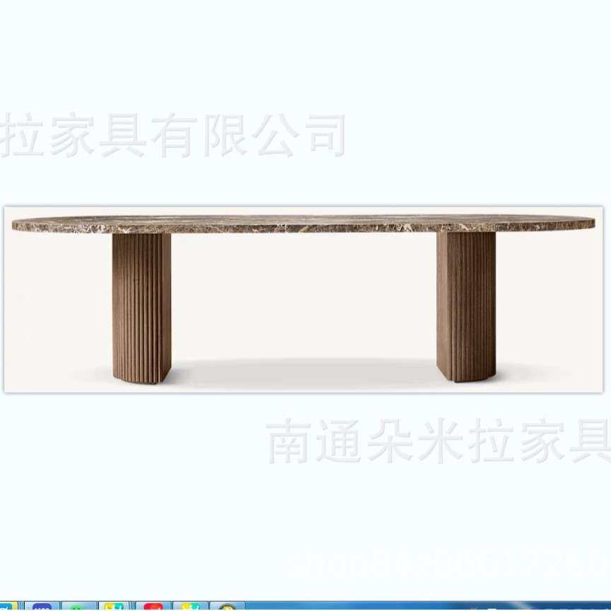 客厅长桌实木餐桌橡木办公桌长方形别墅复古工作台饰面高端大理石