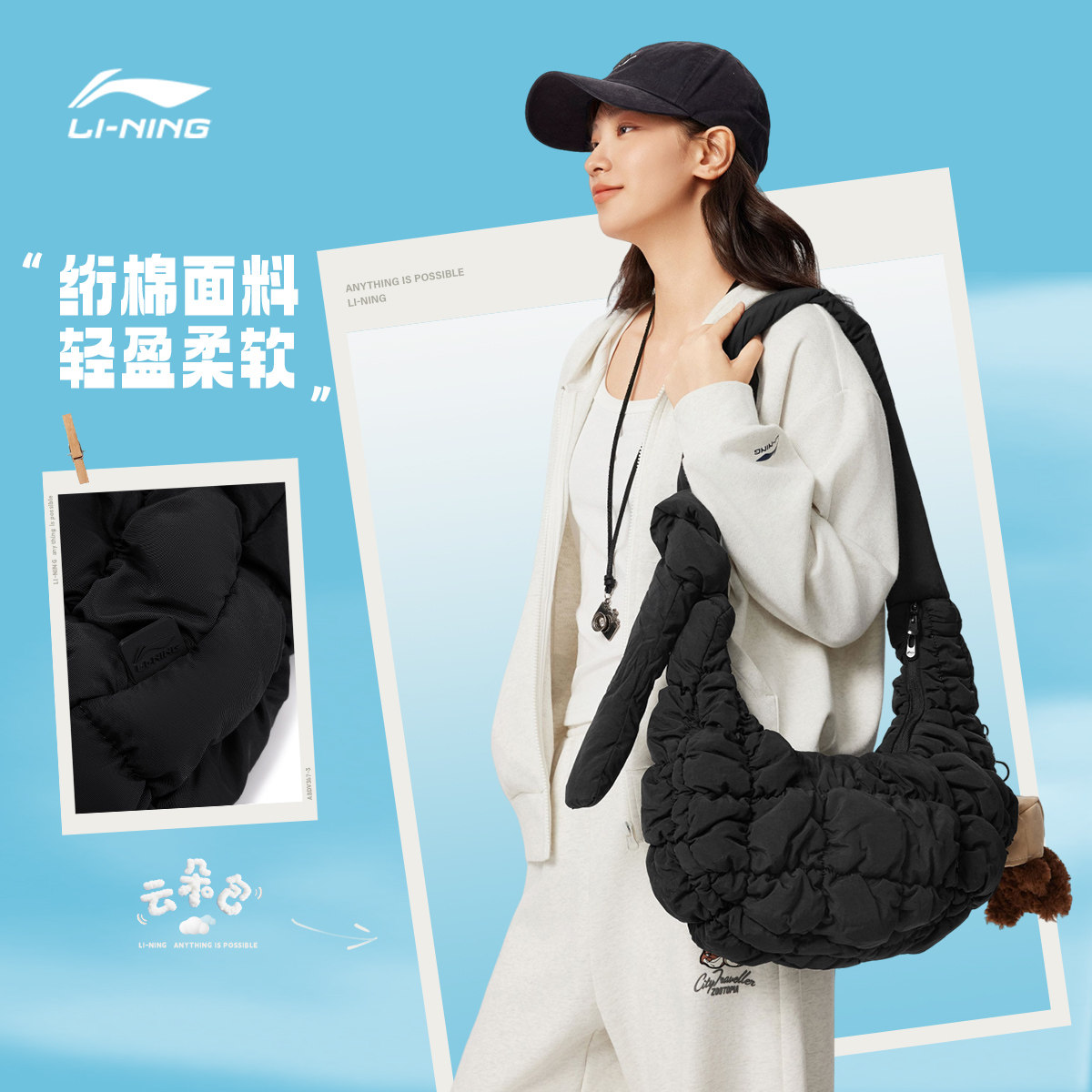 李宁奶芙包男女25新款官方正品户外休闲云朵绑带斜挎包运动单肩包