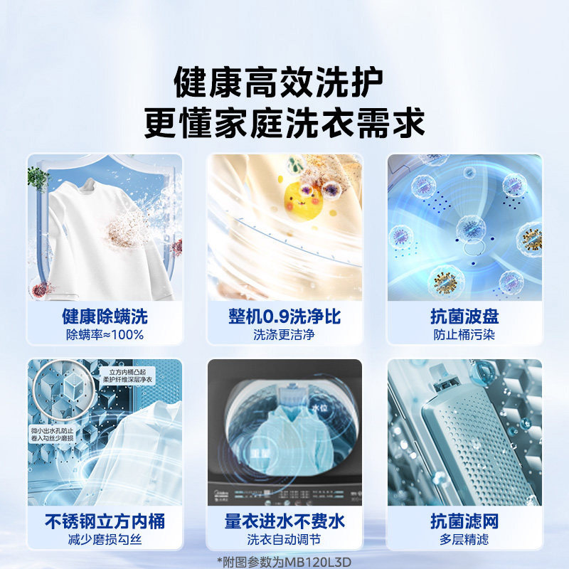 【全民补贴】美的波轮洗衣机直驱变频12公斤大容量除螨菌家用L3D