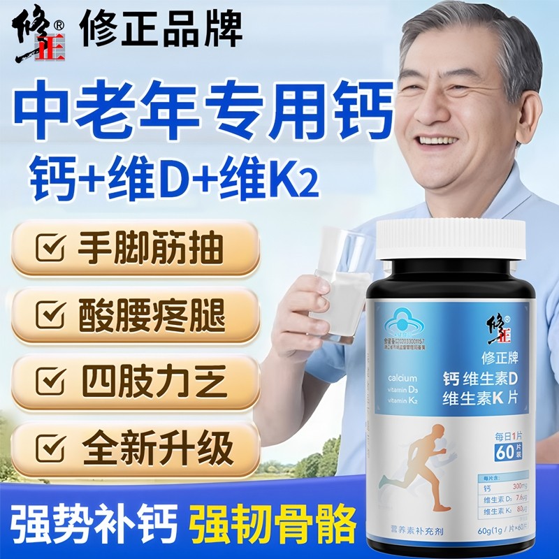 修正钙维生素k2d3钙片腿抽筋骨质疏松补钙中老年成人碳酸钙老年人